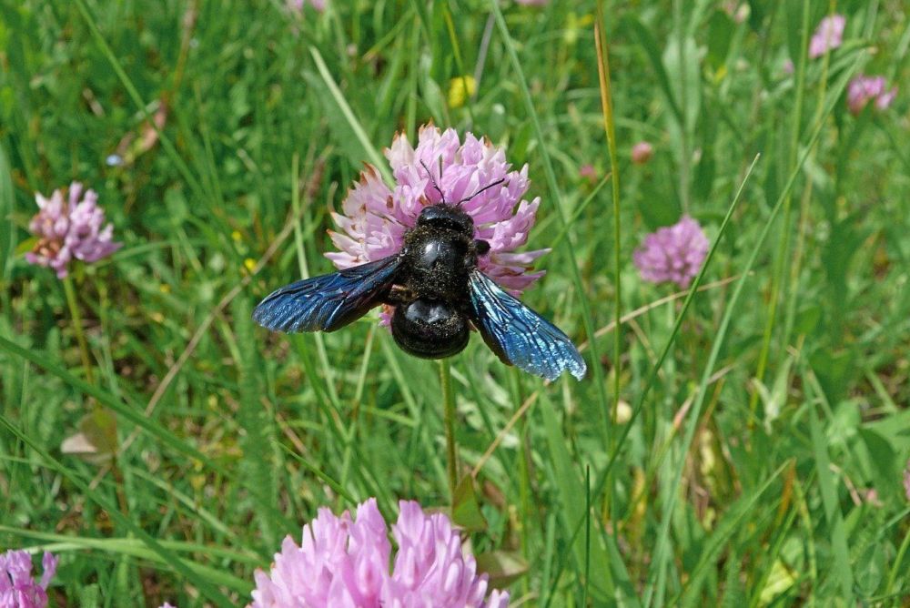 Die grosse Holzbiene, auch bekannt unter den Namen blaue, violette oder gemeine Holzbiene gilt mit einer Länge von fast 3 Zentimetern als die grösste heimische Bienenart. Gegenüber dem Menschen verhält sie sich zurückhaltend. Sie kann zwar stechen tut dies aber nur aus Notwehr. In der Schweiz kommt die Holzbiene ausschliesslich in niedrigen Lagen vor. Ihr Lebensraum sind Obstwiesen, Gärten, Parkanlagen oder Waldränder. Die Holzbiene ist eine Einzelgängerin. Sie produziert keinen Honig und benötigen den eingesammelten Nektar für sich und die Eiablage.