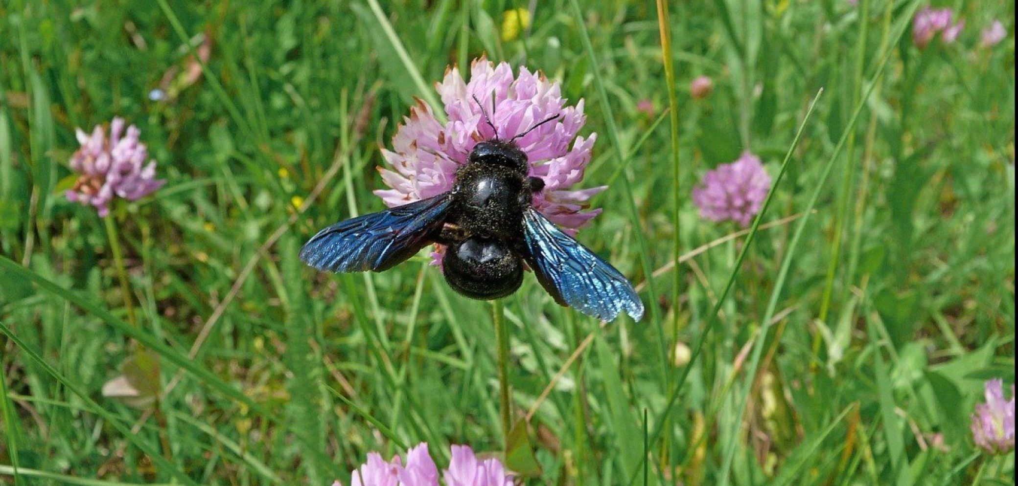 Mit ihrer auffälligen blauen Farbe hebt sich die Holzbiene von anderen Insekten ab. Bild: Pixabay