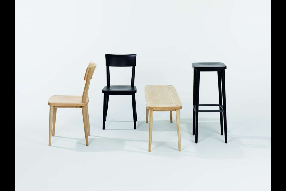 Die neue Stuhlfamilie Honett schlägt eine Brücke zwischen Tradition und Gegenwart. Die moderne Interpretation des klassischen Stabellenstuhls entstand in Zusammenarbeit mit Jürgen Gaiser, Innenarchitekt bei Blocher Partners, für ein Brauereirestaurant. Die gedrechselten Vorderfüsse werden nach herkömmlicher Bauweise in die robuste Sitzfläche eingesteckt und geben dem Stuhl sein urtypisches Erscheinungsbild. Ein Novum ist das Einstecksystem für die gebogenen Hinterfüsse, das eigens für diesen Entwurf entwickelt wurde und damit dem Modell etwas Gegenwärtiges sowie Filigranes verleiht.