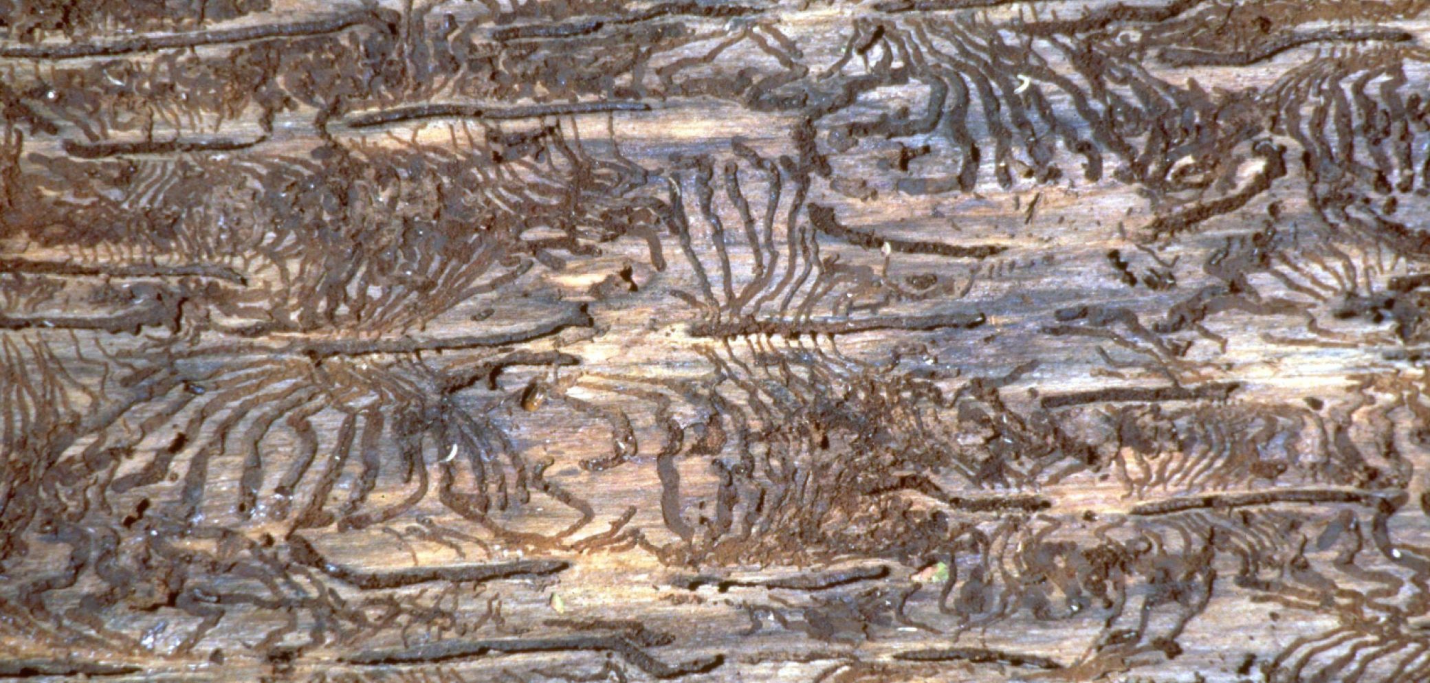 Fichtenrinde mit dem typischen Buchdrucker-Frassbild. Bild: WSL