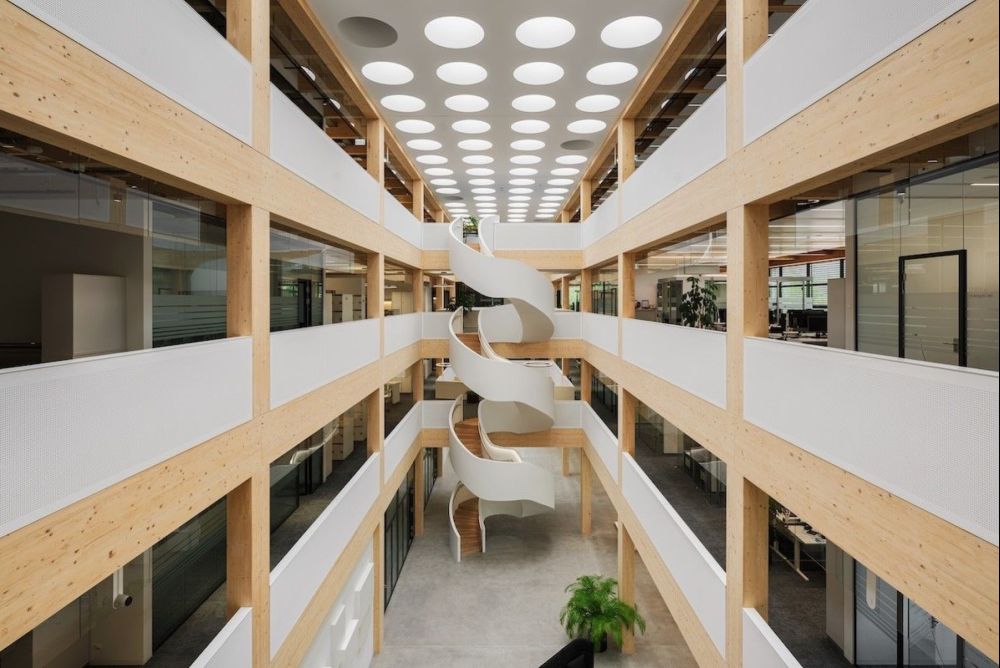 Der neue Hauptsitz ist derzeit der grösste Holzbau im Kanton Solothurn und das erste grosse Bürogebäude in Holzkonstruktion für Bosch weltweit. Die verwendeten Materialien – Beton, Holz und Metall – behalten ihre natürliche, unverkleidete Optik. Der neu errichtete Gebäudekomplex verkörpere die «Home of Bosch»-Vision, heisst es weiter.