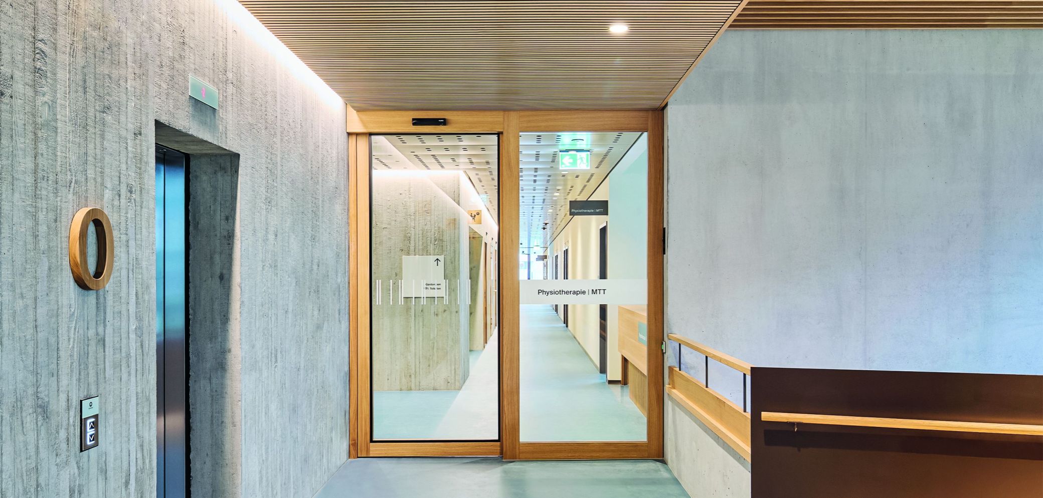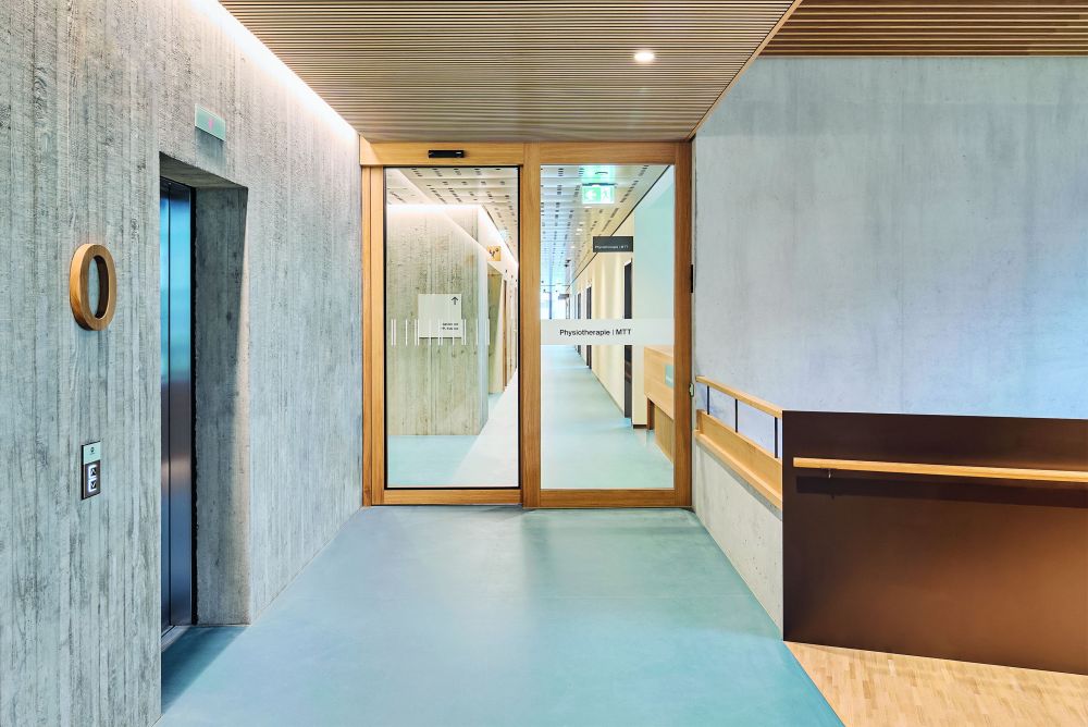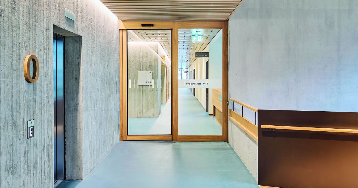 Eine Brandschutz-Schiebetür von Frank mit Schallschutz im Spital in Unterseen BE. Bild: Frank Türen AG