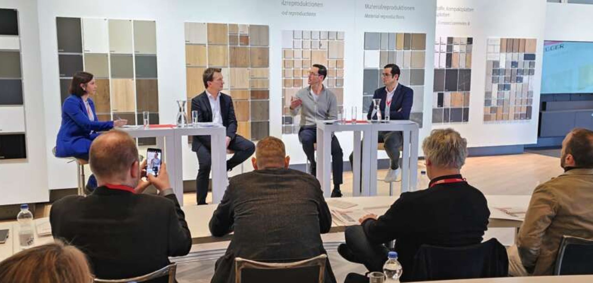 Fachjounalistinnen und -journalisten aus sieben Ländern sind der Einladung zum Presse-Event im Stammhaus von Egger in St. Johann (A) gefolgt. Der Anlass stand unter dem Titel «Nachhaltiges Wachstum in einer Welt voller Umbrüche». In einem Kurzvortrag zeigte Martina Bender, Expertin für Produktnachhaltigkeit bei der Egger-Gruppe, auf, mit welchen Massnahmen es dem Unternehmen gelingen soll, das erklärte Ziel «Net Zero 2050», also das Gleichgewicht zwischen den in die Atmosphäre abgegebenen und den aus ihr entfernten Treibhausgasen, zu erreichen. Als Mittel erwähnte sie unter anderem die Erhöhung des Recycling- anteils in den Holzwerkstoffen und die Optimierung der Rohstoffe, wie beispielsweise jene der Bindemittel.