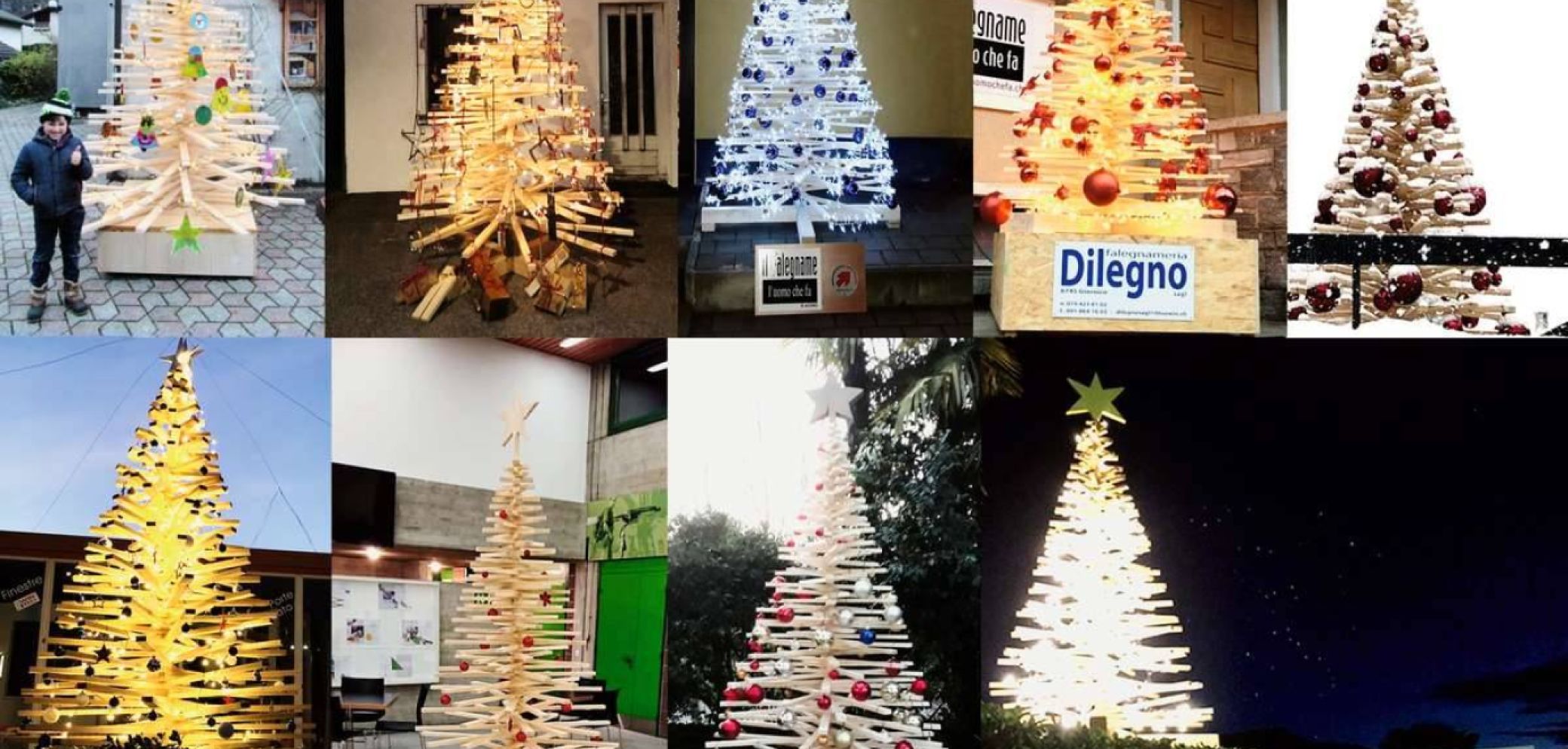L’albero del falegname. La campagna natalizia del VSSM ha contagiato anche il sud delle Alpi dove «il falegname, l’uomo che fa» ha voluto lasciare il segno da protagonista nella costruzione della più grande foresta di Natale della Svizzera!