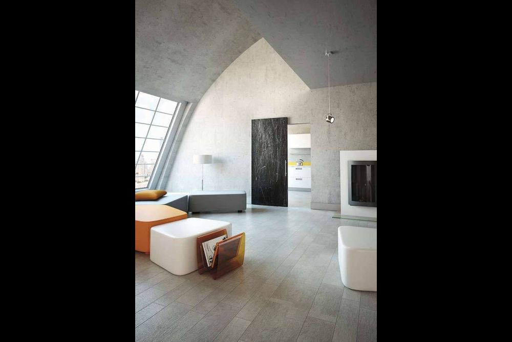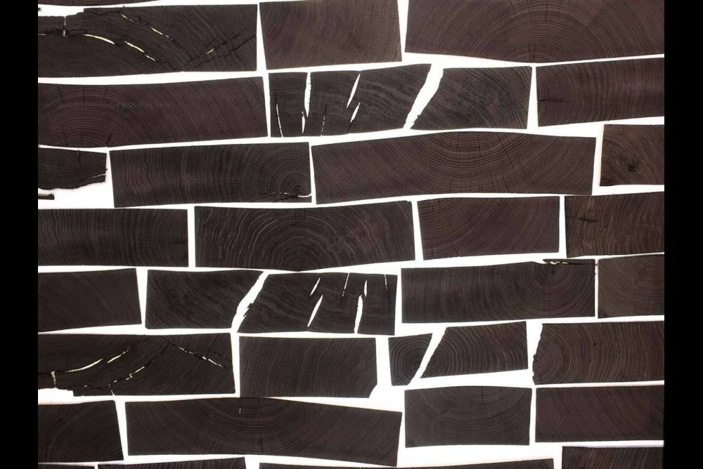 Hautematerial nennt sich die Werkstoffmanufaktur unweit der Schweizer Grenze nördlich von Sondrio. Diese empfiehlt sich als Partner für Materialisierungen in besonderen Holzvarianten. Darunter findet sich auch die immer beliebter werdende angekohlte Oberfläche. Doch damit nicht genug bietet Hautematerial durch kontrolliertes Feuer und weitere Bearbeitungen neben verkohlter Oberfläche von Altholz in Tanne drei Stufen angekohlten Holzes. Dabei tritt die typische Rissbildung durch die Feuereinwirkung ganz unterschiedlich zutage – vom normalen Bild bis zu einem Bild mit unterschiedlichen Strukturen. Bei dieser feinen Oberfläche wirkt das Holz wie ein Brandbild in Miniaturausgabe. Ebenfalls eine Besonderheit sind die in Epoxidharz gegossenen Hirnholzplatten. Je nach Farbgebung sind die unterschiedlich breiten Fugen auch hinterleuchtbar.