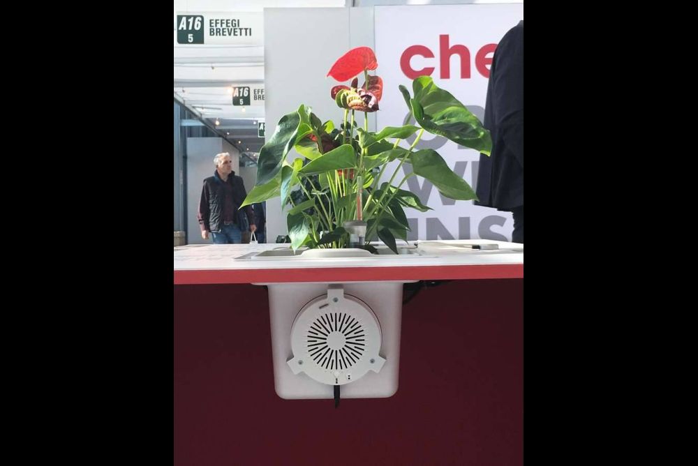 Check Up aus dem venetischen Codognè entwickelt nach eigenen Angaben integriertes und kundenspezifisches elektronisches Design. Darunter auch Geräte für den Möbelsektor – vor allem Luftverbesserer. Der kleine «Aircub» soll die Luft durch einen ionisierenden und ozonisierenden Prozess von gesundheitsschädlichen Stoffen wie VOC, Bakterien, Viren, Schimmelpilzen und allergenen Substanzen reinigen. Das Gerät, etwa für die Montage im Schrankinneren, verströmt zudem leicht parfümierte Luft. Das Ganze lässt sich mit dem Smartphone steuern, mithilfe dessen man die Luftqualität überwachen kann. Besonders raffiniert kommt die Funktionsweise von «Itair» daher. Was wie eine in ein Möbel integrierte Topfpflanze aussieht, hat dieselbe Funktion und Steuerungsmöglichkeit. Jedoch enthält der elektronische Blumentopf keinen Dufterzeuger, sondern eine Zwangslüftung im Wurzelbereich, mithilfe derer sich die natürliche Reinigungsarbeit der Grünpflanze exponentiell verstärken soll. Das System funktioniert laut Hersteller mit 21 verschiedenen Pflanzenarten.