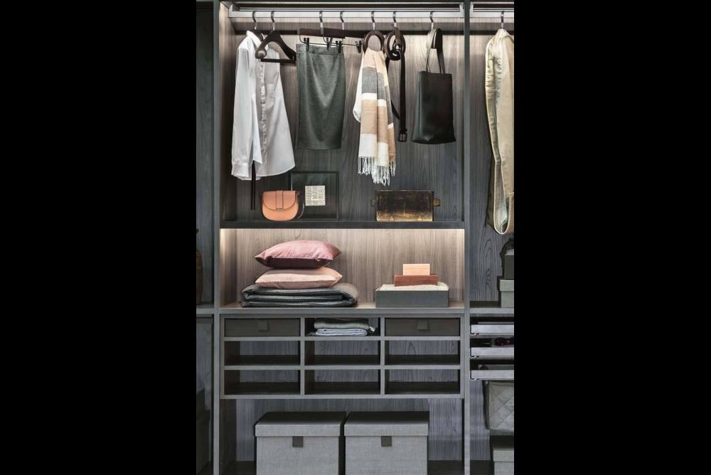 Der renommierte Beschlaghersteller Salice hat sich zum Komplettlieferanten für Zubehör und Beschläge von Kleiderschränken aufgeschwungen. Neben den funktionalen Beschlägen wie Auszügen, Stangen und Liften, bietet Salice nun auch die passenden Bügel, Einschübe und Aufbewahrungsboxen in edler Ausführung an. Das Sortiment ist umfänglich und beinhaltet auch Kleidersäcke aus Baumwollgewebe, Hosen- und Schuhträger bis hin zu Trägern für Uhren und Schmuck. Die Komponenten sind aus einem Guss, was dem Anspruch einer gehobenen Ausstattung gerade bei begehbaren Kleiderschränken entspricht. Bei den Neuheiten im Bereich der funktionalen Beschläge fielen vor allem die deutlich an Laufruhe und Geschmeidigkeit verbesserten «Mover» und «Mover Flat» auf. Mit den senkrechten Schiebetürbeschlägen kann die Tür in jeder Position angehalten werden. Dazu sind weder doppelte Seitenwände nach Gegengewichte vonnöten. «Mover Flat» verschliesst offene Regalflächen von unten nach oben laufend und ist im geöffneten Zustand kaum sichtbar. Die maximale Breite der Tür beträgt stolze 2400 Millimeter.