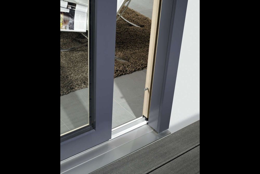Mit der «HS Integral» wurde von Unilux eine nahezu schwebende Gleittür in Holz-Alu-Bauweise entwickelt, die gerade für die ältere Kundschaft sehr leicht zu bedienen ist. Das Fehlen der sonst üblichen Bodenschwelle macht den bodengleichen Aufbau möglich und sorgt dafür, dass die Tür dadurch auffällt, dass sie nicht auffällt.
