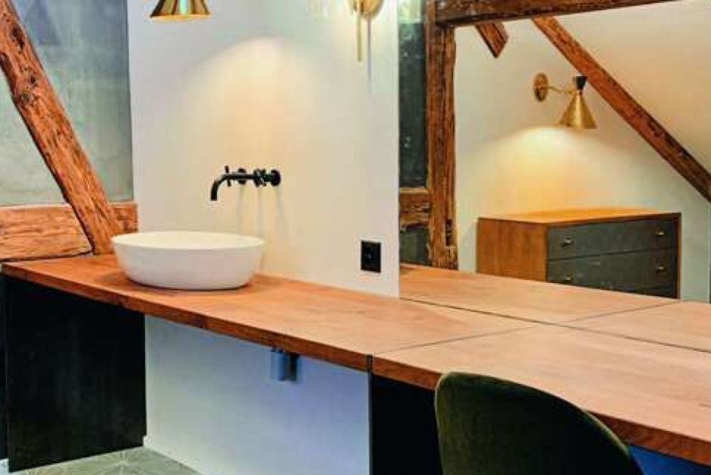 «Holz ist meine Leidenschaft, und diese möchte ich auch an unsere Kunden weitergeben», sagt Frei. Deshalb fertige man nach Möglichkeit Waschtische aus Holz mit geölter Oberfläche. «Dafür verwenden wir ausschliesslich das 2K-Hartwachsöl Rubio Monocoat, welches wir bei der Firma Kuratle und Jaecker beziehen», sagt Frei. «Bisher haben wir damit nur gute Erfahrungen gemacht.» Wichtig sei es jedoch, das Öl richtig aushärten zu lassen. Deswegen liegen zwischen der Oberflächenbehandlung und Montage immer mindestens zwei Wochen. Nur wenn die Durchhärtung erfolgt ist, könne das Produkt den vollen Oberflächenschutz entwickeln.