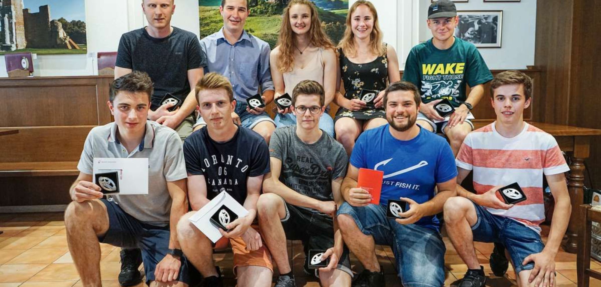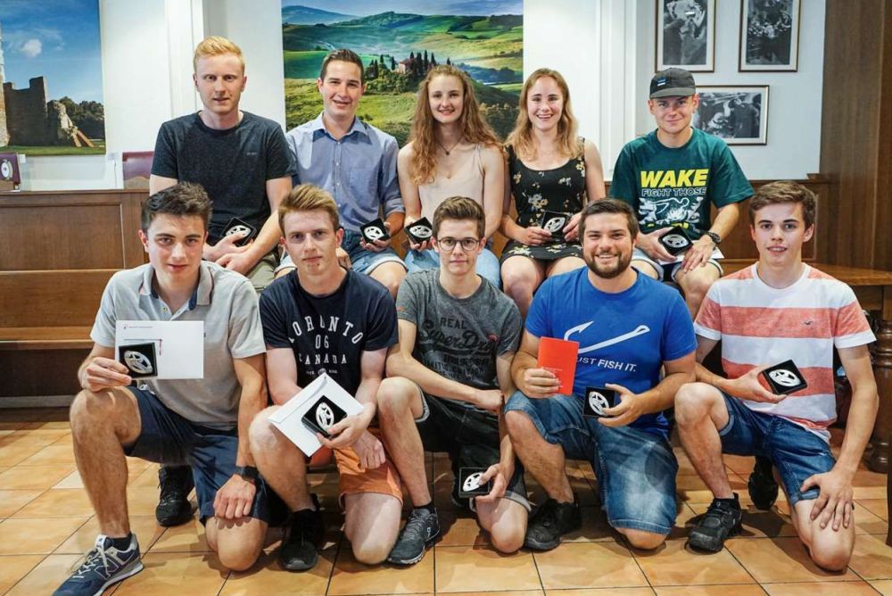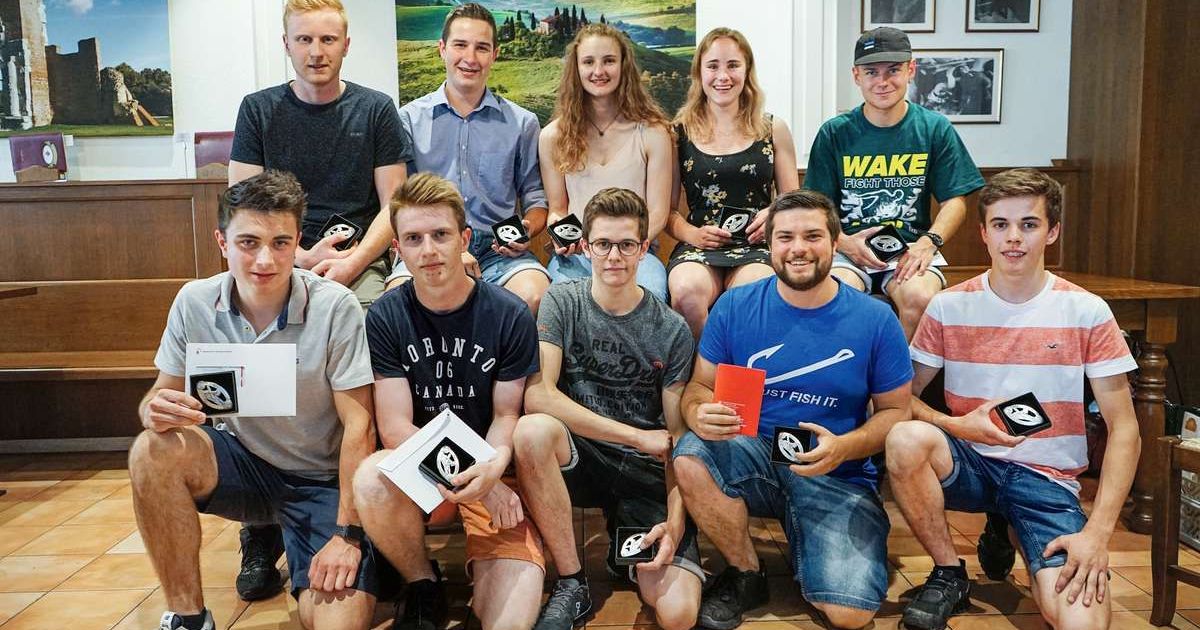 Die Jungschreiner mit Note 5 und mehr erhielten eine Gürtelschnalle als Auszeichung. Bild: Clemens Fässler