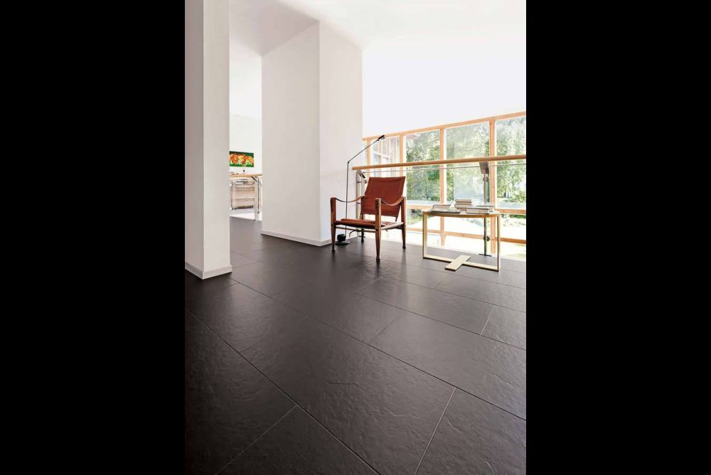 «Celenio» von Haro ist ein Boden mit der Optik von Stein oder Fliesen und der angenehm warmen Haptik eines Holzbodens. Neu gibt es ihn im grosszügigeren Fliesenformat von 703 × 350 mm mit einer renovierungsfreundlichen Aufbauhöhe von 6,5 mm. Haro hat einen Boden aus 90 % Holzbestandteilen in acht Steinoptiken entwickelt, der auf dem Werkstoff «Harolith» basiert. Laut Hersteller ist der Boden besonders beanspruchbar, pflegeleicht und im Gegensatz zu Steinböden sogar bruchfest. Dabei sind die Platten leichter als keramische Fliesen. Durch die Ausstattung «Silent Pro» sind sie geräuschdämmend, durch «Top Connect» einfach zu verlegen und mittels einer Schienensystemlösung auch für Wandgestaltungen geeignet.
