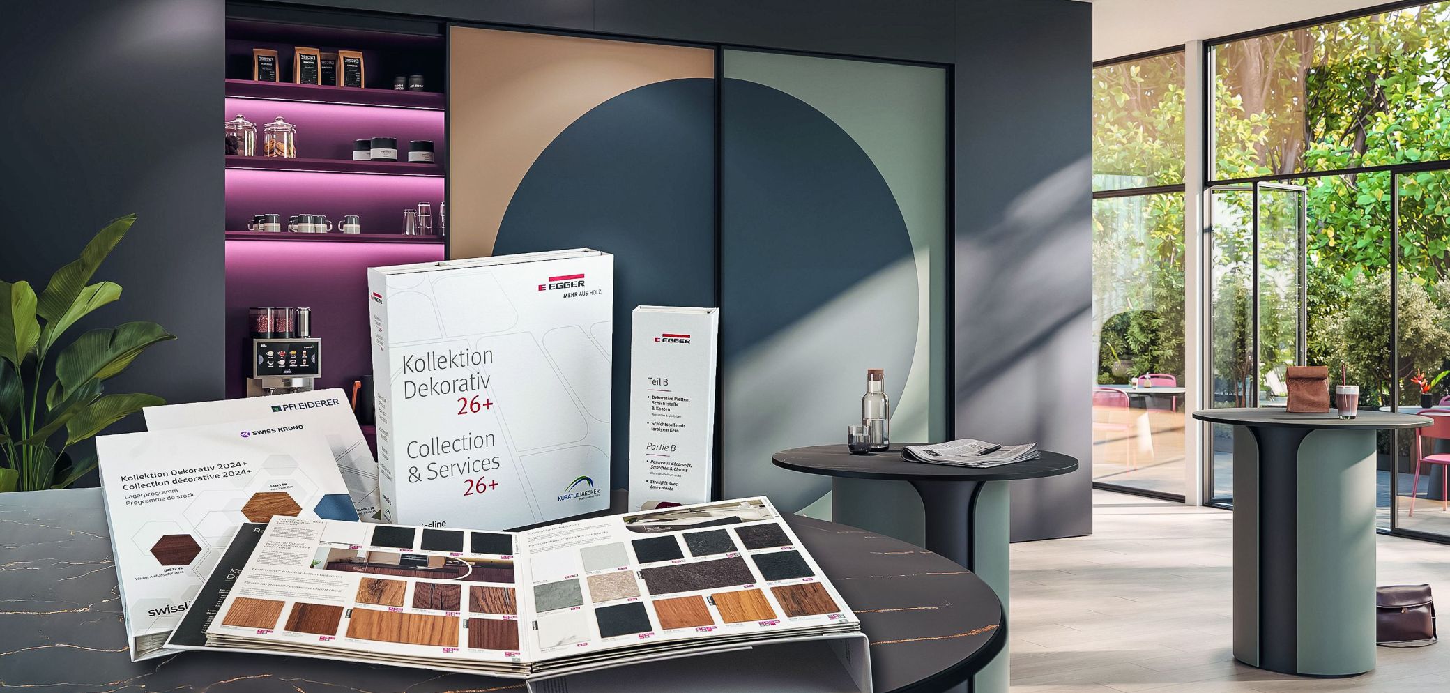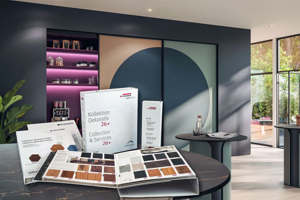 Überzeugende Lösungen im Dekor- und Materialverbund bietet die neue Kollektion «Dekorativ 26+» von Egger. Attraktiv für den modernen Innenausbau sind die 220 Dekore für dekorative Platten mit 18 Neuheiten (zum Beispiel in topmodernen Beigetönen). 132 davon sind ab Lager Kuratle & Jaecker innert kürzester Zeit verfügbar. Grösste Änderung ist das neue Standard-Schichtstoffformat: 3050 × 1310 mm (bisher 2800 × 1310 mm). Wichtig: Alle Dekore der Egger-Kollektion «24+» bleiben weiterhin gültig (mindestens bis «EDC 28+»).