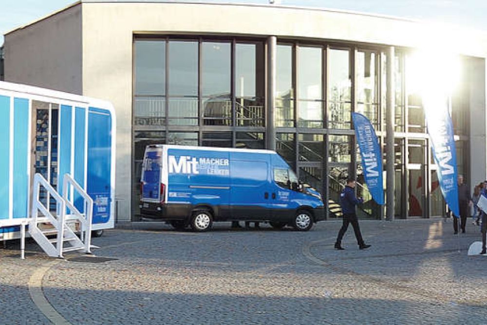 Nicht zu übersehen: die VSSM-Roadshow zum Schwerpunkt Mitarbeiterförderung mit dem markanten Kampagnenfahrzeug im Zentrum.