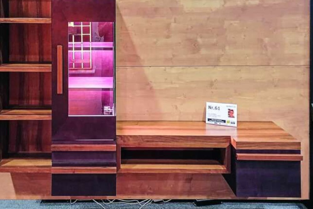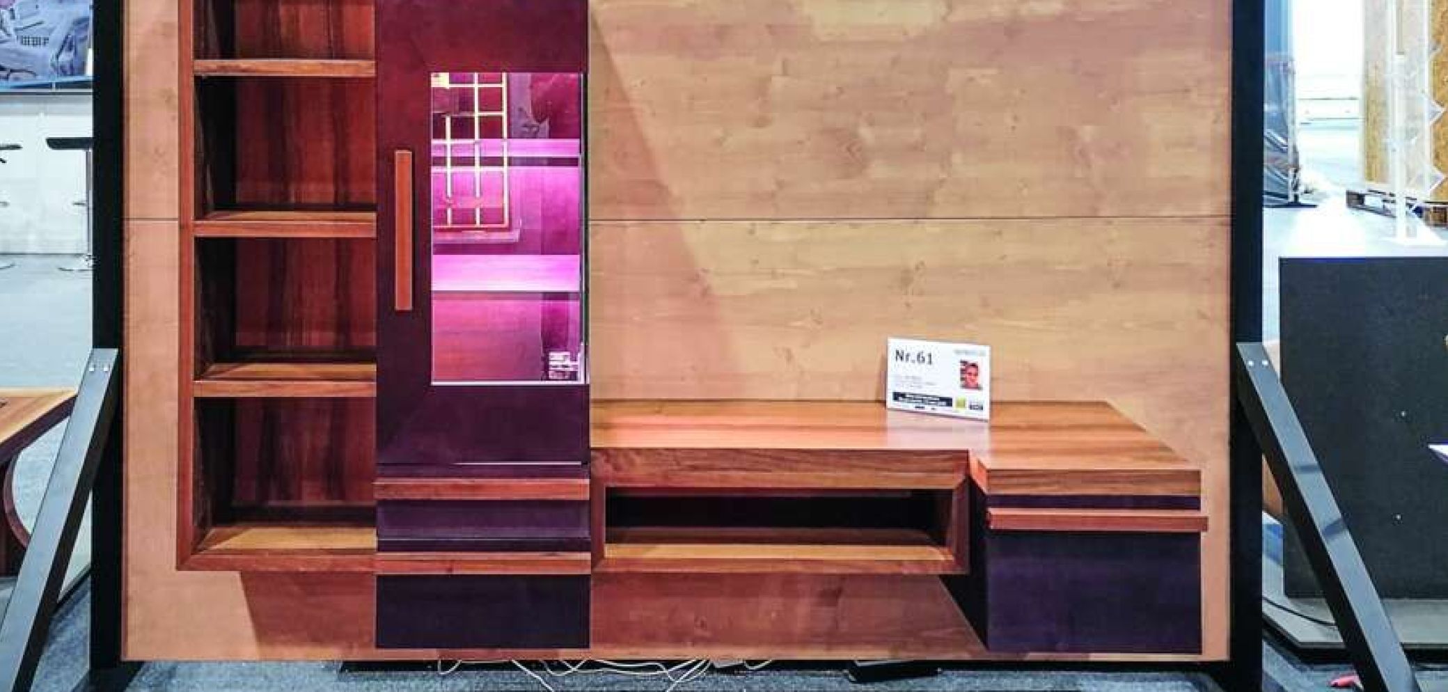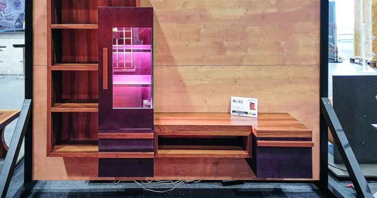 Für ein Berufsschulprojekt hat Jake Malyk aus Näfels GL eine Wohnwand entworfen und hergestellt. Die Idee dazu kam von seinem Vater. Zu seiner Freude hat er mit dem Möbel den ersten Preis gewonnen und durfte es an der Messe Holz in Basel im Rahmen des «Schreiner Nachwuchsstar 2022» ausstellen.