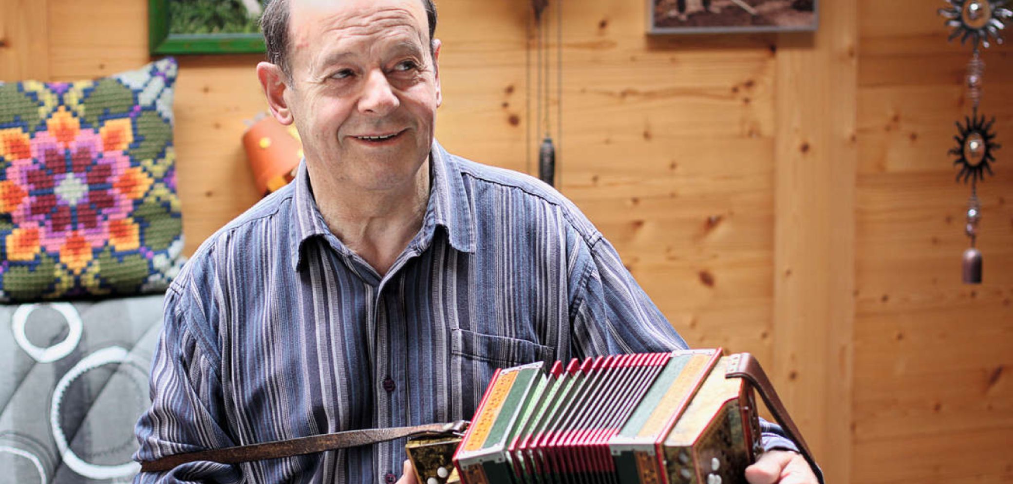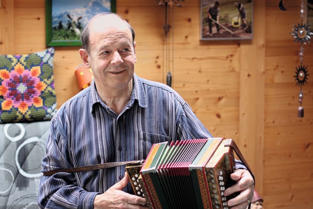 Das Repertoire von Kaspar Ambühl ist umfangreich und schliesst zahlreiche Eigenkompositionen ein. «Sie spielen sich ganz plötzlich im Kopf ab», sagt er. So inspirierte ihn die in den Neunzigerjahren von Hans Fritschi lancierte Schneekanonen-Initiative zum Ländlerwalzer «Schneekanonier Fritschi», und so entstand nach einem langen musikalischen Abend mit Kollegen das Stück «Lustige Heifahrt us der Mühli». Was der Mann mit dem feinen Musikgehör nicht mag, sind Misstöne. «Er ist sehr exakt und perfektionistisch», bemerkt seine Frau. Die Antwort folgt prompt: «Wenn der Fachmann ein Produkt herstellt, das ihm gefällt, ist auch der Kunde damit zufrieden. Das hat mir mein Lehrmeister beigebracht, und so halte ich es bis heute», sagt der gelernte Schreiner. Zu seinem Instrument pflegt er eine innige Beziehung. Als er beim Skifahren stürzte, liess er sich den Gips am Daumen so anbringen, dass er beim Spielen nicht stört. Selbst durch die Diagnose Multiple Sklerose, die ihn zwang, den Schreinerberuf aufzugeben und frühzeitig in Pension zu gehen, liess er sich nicht einschränken – im Gegenteil: «Das Fingertraining auf den Tasten ist wie eine Therapie.» Sein Wissen gibt er an die Jungen weiter. In den Unterricht bringt er viele alte Volkslieder mit, die er für das Schwyzerörgeli arrangiert hat. Eine seiner ehemaligen Musikschülerinnen und Bandkollegin in der aktuellen Formation «Scheen und gmietli» schlug ihn 2015 der Gemeinde Grindelwald zur Nomination für die Bürgerehrung vor. Ambühl, der an der Preisverleihung für die musikalische Unterhaltung besorgt war, ahnte nichts davon. Überrascht sei er gewesen und sprachlos, als seine Kollegin zur Laudatio angesetzt habe. Die Ehrung für sein Lebenswerk mit besonderem Dank für die geleistete Jugendarbeit und Kulturförderung hängt eingerahmt bei ihm zu Hause. Dem Nachwuchs legt er derweil vor allem eines ans Herz: «Üben, üben, üben – und zwar nicht des Übens Willen, sondern solange, bis jeder Ton sitzt.»