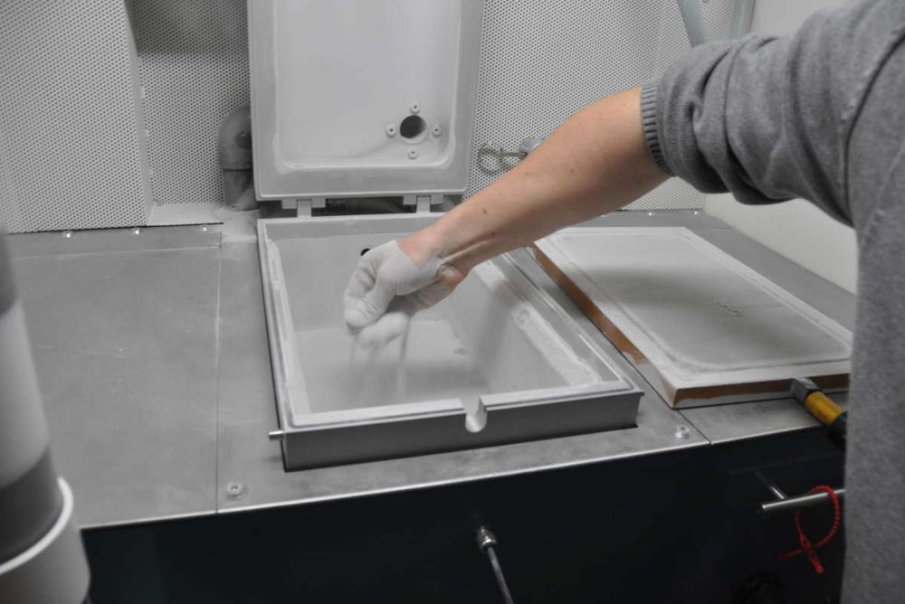 Nebst dem Wegfall der aufwendigen Schleifarbeiten haben Hagspiel aber noch weitere Aspekte überzeugt. So sei die Anlage beispielsweise schnell und einfach zu reinigen. «Im Pulverzentrum können wir alle Komponenten mit Druckluft reinigen. Ein Farbwechsel ist innert Minuten erledigt.» Ausserdem können die beschichteten Teile am Ende der Hängebahn ohne Abkühlphase direkt gestapelt werden, ohne dass sie aneinander kleben bleiben. Eine Trocknungskammer, die wiederum Platz und Energie verbraucht, sucht man in der Produktion also vergebens. «Und die Anlage stösst keinerlei VOC aus. Das ist nicht nur ökologisch sinnvoll, sondern spart auch die VOC-Abgaben beim Lack.»
