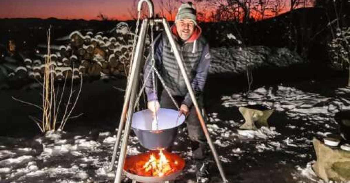 Schreinermonteur Remo Stäheli (50) verwöhnt in der Freizeit Gäste mit Waldfondue. Bild: PD