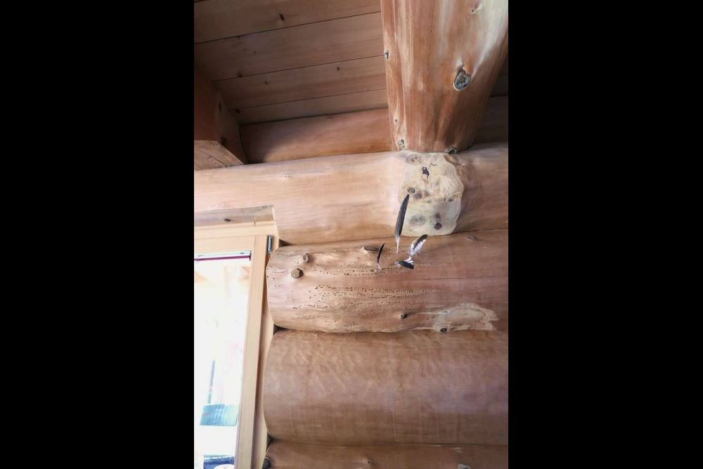 Knacknüsse sind die Fenster- und Türöffnungen. Vorausschauen ist gefragt. Dicke oder dünnere Stämme sind gezielt so einzusetzen, dass der Sturz noch ausgefräst werden kann, und zwar auf allen Hausseiten, denn die Stämme werden versetzt gelegt und in den Ecken verzahnt. Diese Verkämmungstechnik heisst Saddle-Notch und stammt ursprünglich aus Kanada.