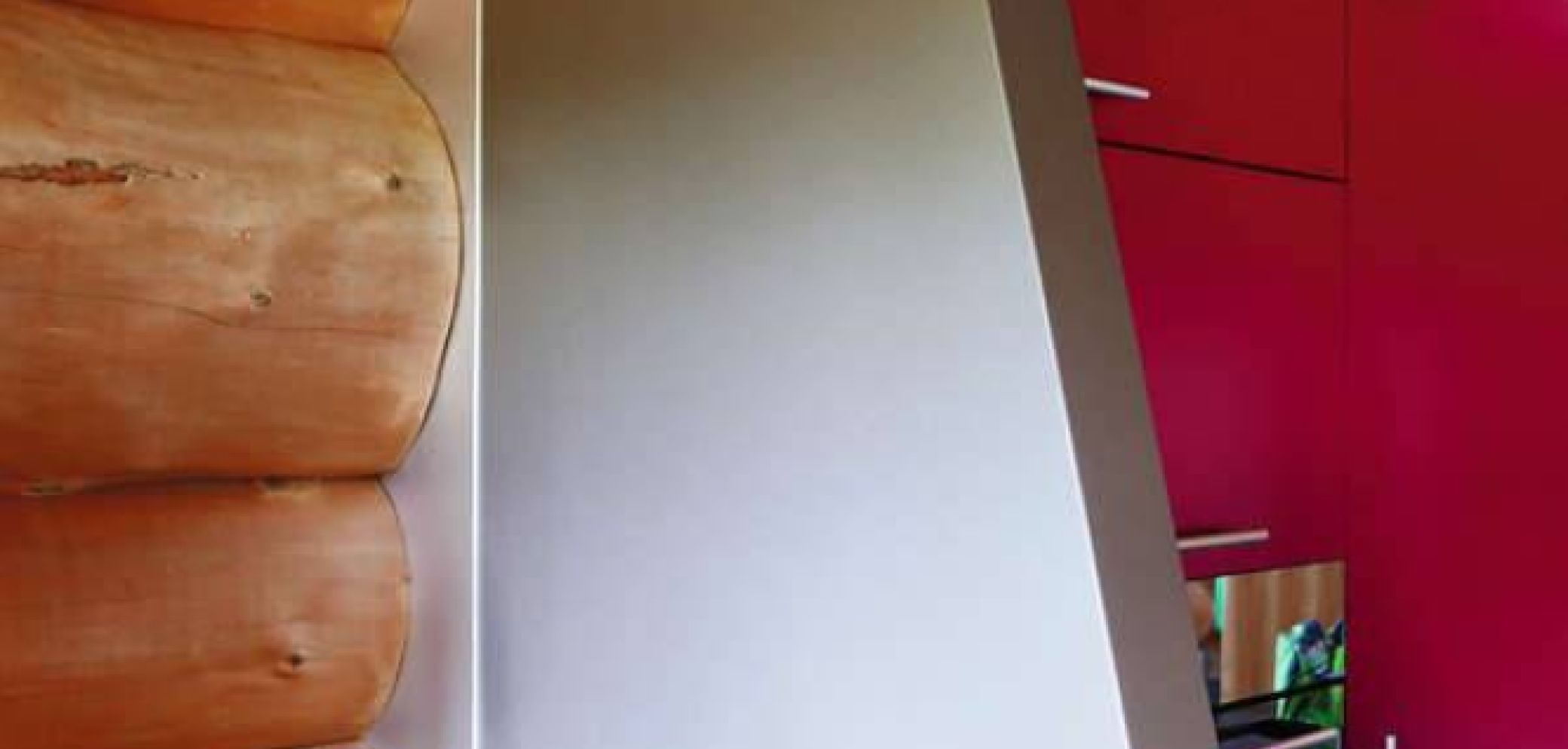 Die Förster geben gerne Weisstannen ab. Das wild gewachsene Holz ist nicht sehr beliebt. In einem Massivholzbau können auch Stämme mit Krebs oder Misteln verbaut werden, wenn dies der Bauherrschaft gefällt. Die feinen Löchlein der Mistelwurzel, die in den Stamm wächst, schaden dem Holz nicht. Ebenso der Krebs. Das unschöne Wort bezeichnet ein Gewucher, das dekorativ eingesetzt werden kann. Ein Blockhaus kann innen beliebig ausgestattet werden. Die Küchenkombination steht frei vor der Wand, eine vertikale Chromstahlabdeckung kann einfach ins Holz gefräst werden. Mit dem nötigen Setzraum natürlich. Die vertikalen Elektroleitungen werden beim Aufziehen der Wände nach jeder Stammlage eingebohrt. Bodenbeläge können frei gewählt werden, eine Bodenheizung ist konstruktiv das Einfachste. Ein modernes Blockhaus steht heute meistens auf einem Betonfundament. Abgesehen davon ist es ein Massivholzbau aus natürlichen, nachwachsenden Materialien, braucht wenig Energie und eignet sich hervorragend zum Wohnen. Die Ästhetik der wuchtigen Häuser gibt immer wieder zu reden, doch wenn es um die Ökobilanz und das Raumklima geht, schlägt ein Massivholzbau sämtliche Beton-, Metall- und Backsteinbauten. Und: Auch bei diesen lässt sich über die Ästhetik diskutieren.