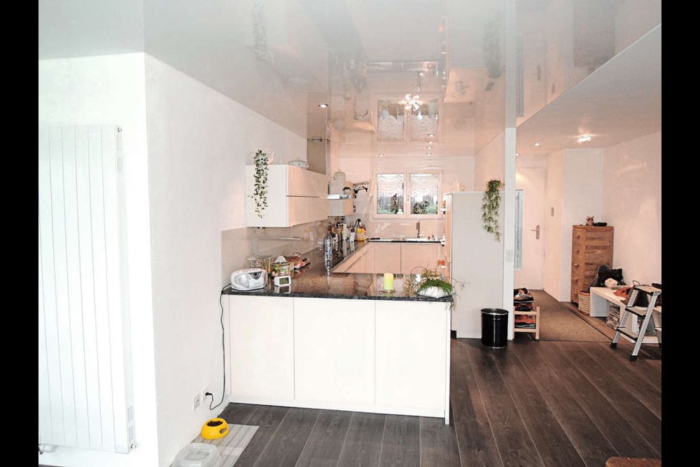 Durch den Einsatz einer etwas heruntergehängten oder farblich abgegrenzten Decke in der Küche lässt sich mit der Wirkung auf den Raum spielen. Ein dezent anderer Farbton oder eine dezent andere Oberflächenstruktur integrieren die Küche im Raum. Wird hingegen mit klaren Struktur- oder Farbänderungen gearbeitet, sticht der Koch- bereich hervor und präsentiert sich als visuelle Insel im Raum.