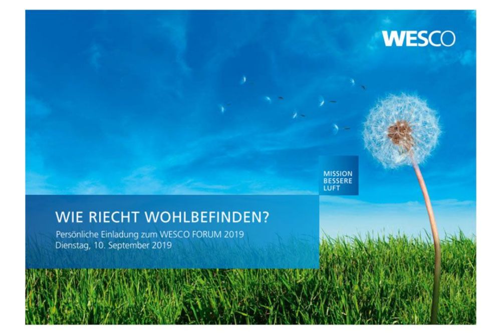 «Wie riecht Wohlbefinden?» Dieser Frage gehen verschiedene Referenten am 10. September 2019 in Wettingen AG nach. Das Forum wird von Wesco, Hersteller für Lüftungstechnik, organisiert. Experten für Luftqualität und Gerüche erläutern, warum und wie Düfte wirken, welchen Einfluss die Aussenluft auf das Innenraumklima hat und wie unser Körper auf Luftverschmutzung reagiert.