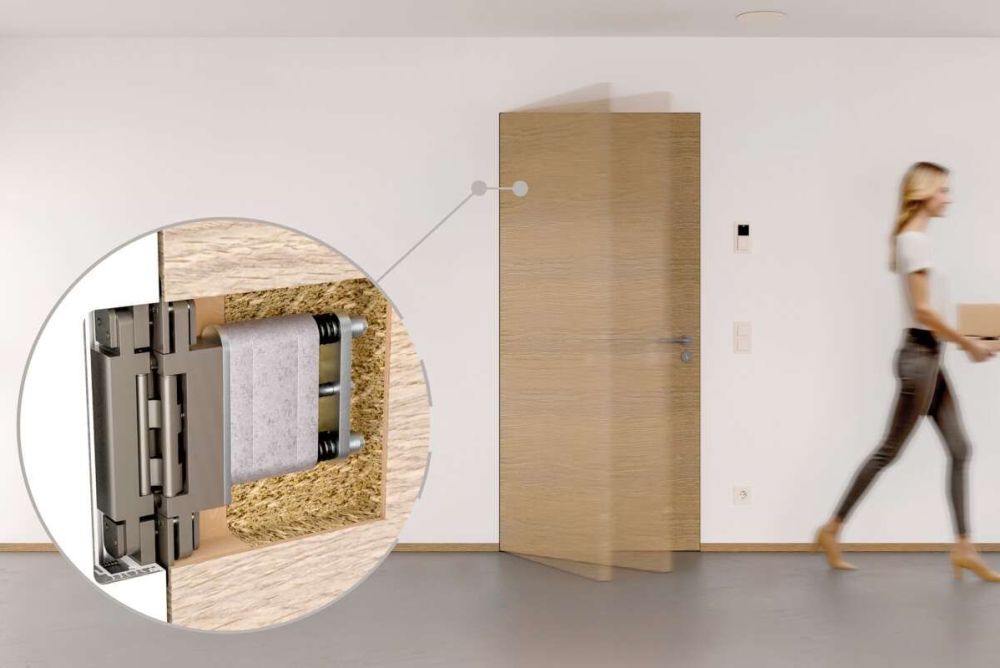 Im Fokus der Branche. Man nehme ein verdeckt liegendes Band, das den Türschliesser unsichtbar integriert, und eines, das dank asymmetrischem Aufbau Zargenaufdopplungen überwindet und so dem Architekturtrend nach spiegellosen Zargen und flächen- respektive wandbündigem Design entgegenkommt