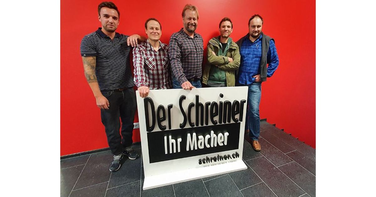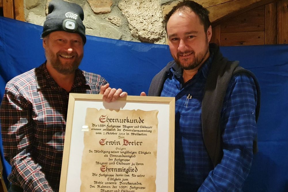 Der Vorstand der Fachgruppe Wagner und Skibauer um Neumitglied Tobias Jordi (2.v.r.) und seinen Vorgänger Erwin Dreier (r.). Bild: Monika Hurni