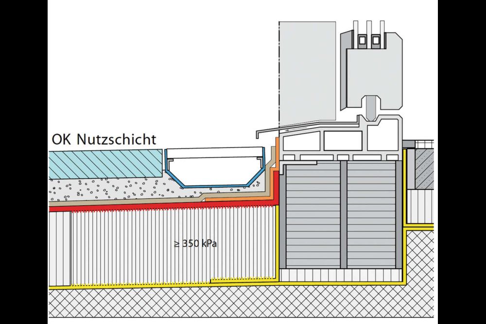 Ein Aspekt, dessen sich viele nicht bewusst sind, ist, dass man sich deshalb beim Flachdachanschluss mittlerweile in den meisten Situationen im Bereich von Sonderlösungen bewegt. Denn gemäss der SIA 271 «Abdichtungen von Hochbauten» müssen zwischen OK (Oberkant) Nutzschicht und OK Freibord (in der Regel OK Abdichtung) mindestens 60 mm liegen. Kleinere Distanzen sind nur aufgrund einer Ausnahmeregelung unter Ziffer 5.2 zulässig. Diese Ausführungen erfordern aber zusätzliche Schutzmassnahmen.