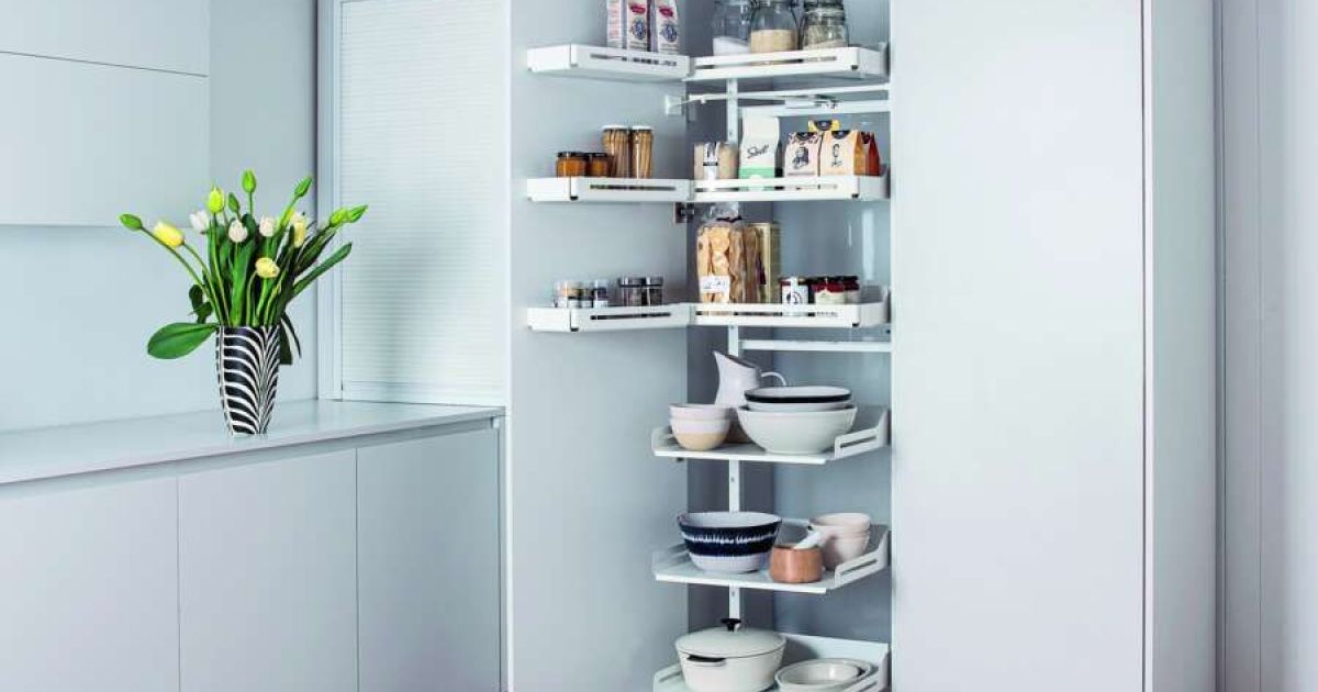 Mit dem Hochschrankauszug «Pleno Plus» lässt sich der Inhalt eines Hochschranks auf einen Blick erfassen – und das Schrank- volumen dennoch vollständig ausnutzen. Mit einem Handgriff fahren alle Tablare samt Inhalt aus. Weil die Tablare leichtgängig auf den Führungsschienen laufen, reicht der Handgriff eines kleinen Kindes. Einzig um an die obersten Tablare zu gelangen, muss es noch etwas wachsen. Für alle anderen gilt: Benutzer erreichen ergonomisch und bequem jeden Gegenstand. Denn die oberen Tablare sind geteilt, das Staugut lagert – wie bei einem Kühlschrank – sowohl im Hauptauszug als auch auf der Türrückseite. Damit wird alles aus dem hinteren Bereich der sonst eher schwer zugänglichen, oberen Tablare ebenso gut erreichbar wie die Dinge auf den unteren Tablaren. «Pleno Plus» ist als komplettes Beschlagset mit höhenverstellbaren Einhängetablaren und Führungen inklusive Soft-Öffnung erhältlich. Mit Holzboxen und magnetischen Unterteilungen lassen sich die Tablare flexibel ausstatten. Zur Auswahl stehen Tablare in der Kombination «Metall-Anthrazit/Eiche» sowie in der Designlinie «Libell» aus pulverbeschichtetem Stahl in den Farben Weiss, Silber und Anthrazit.