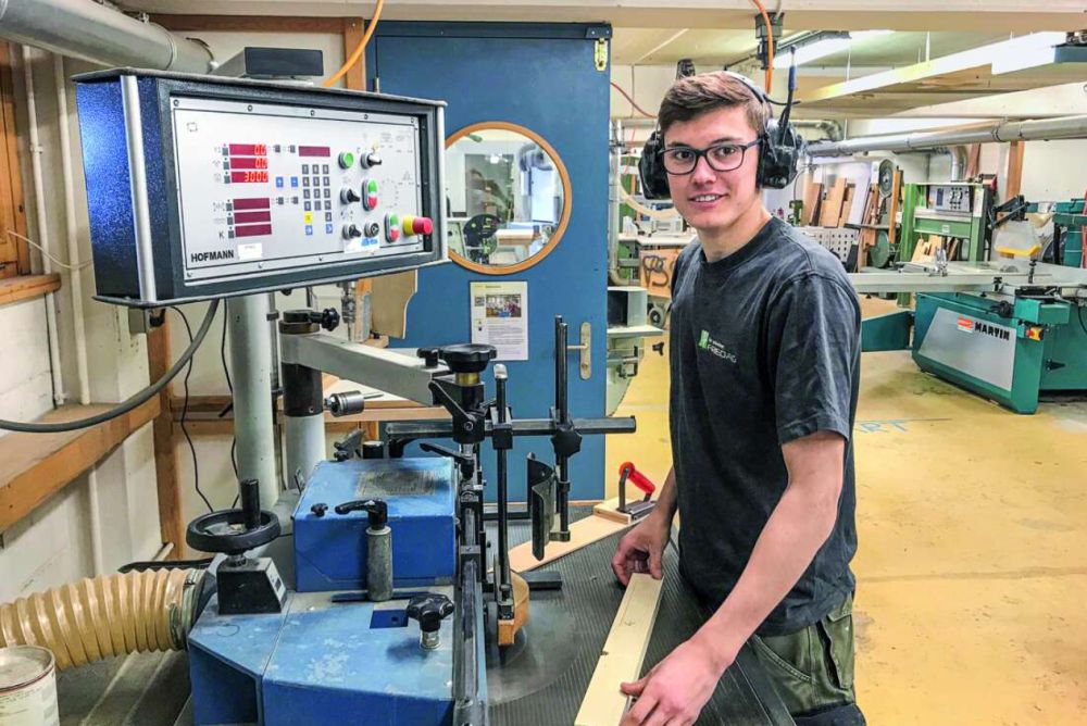 Seine Ausbildung macht Silvano Pua in der Schreinerei Fried in Bever GR. «Ich habe dort geschnuppert und es hat mir super gefallen. Es ist ein toller Betrieb.» Er hat noch einen Oberstift und fühlt sich im Team wohl. Je mehr überbetriebliche Kurse (ÜK) er absolviert, desto mehr Verantwortung wird ihm bei der Arbeit übertragen. Das freut ihn und spornt ihn an.