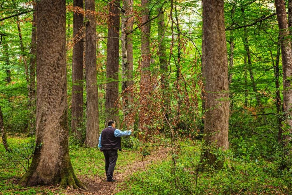 - Die Einzelstammnutzung ist in meinen Augen die beste und nachhaltigste Art und Weise, den Wald zu ernten. Bäume binden dadurch bis zu dreimal mehr CO2. Heutzutage wird bei den Forstformen vermehrt auf die wirtschaftlichen Aspekte geschaut, und der Respekt vor dem Wald und dem Baum geht verloren. Auch das Beachten des richtigen Fällzeitpunktes ist wichtig. Neben Mondholz und dem Fällen in der Winterzeit zeigen uns die Bäume, wenn sie bereit zum Ernten sind. Bei der Eiche soll man beispielsweise warten, bis die Eicheln fallen, und bei der Weisstanne, bis die Tannenzapfen verblüht sind.