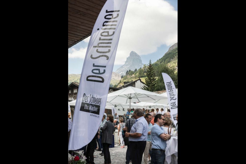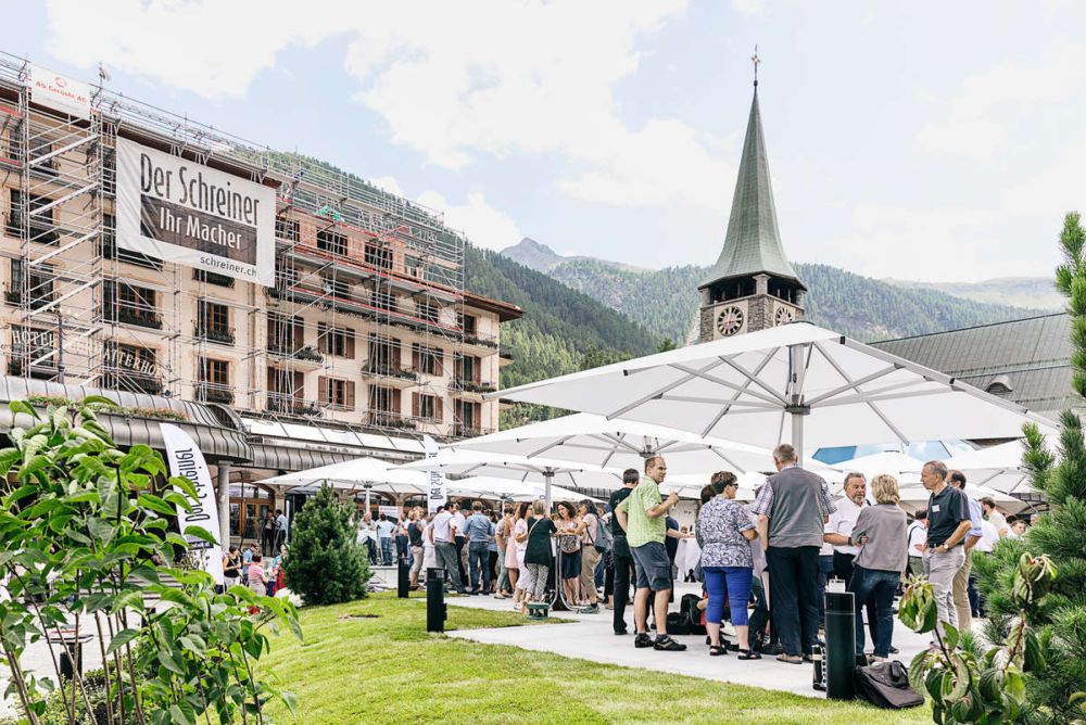 Unübersehbar: Die Verbands-Schreiner zeigten Präsenz – vor, am und im Hotel Zermatterhof. Bild: Pedro Rodrigues