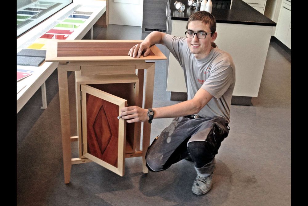 Er wird vor allem verschiedene Eckverbindungen trainieren. «Ich versuche herauszufinden, welche Arbeitstechnik mir am besten liegt. Es ist eine Art Selbstfindungsphase. Das heisst, ich überlege mir, wie ich beispielsweise am schnellsten und einfachsten eine perfekte Schlitz- und Zapfenverbindung hinbringe. Habe ich diese Verbindung im Griff, steigere ich den Schwierigkeitsgrad und mache eine doppelte Schlitz- und Zapfenverbindung.» Die möglichen Möbel spielen Mirco und Reto dreimal durch. Einmal nach Plan und zweimal in abgeänderter Form. Mirco hat bereits ein Testmöbel erstellt. «Ich brauchte nach der Pause etwas länger, aber im Grossen und Ganzen hat es ganz gut geklappt», sagt der zweifache Schweizermeister.