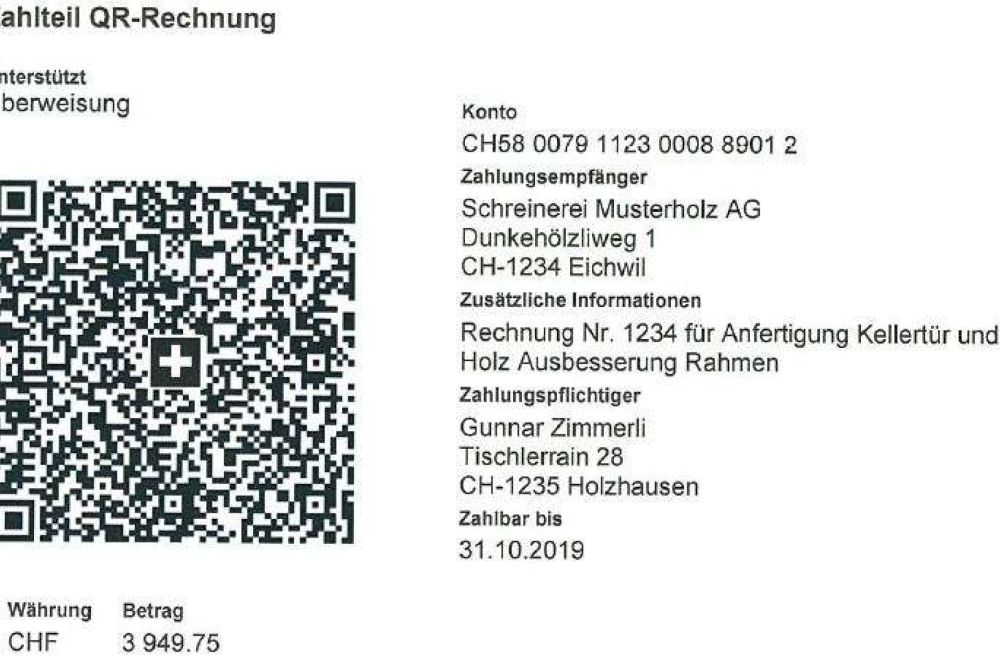 Die verschiedenen Einzahlungsscheine wie zum Beispiel der orange (ESR) oder der rote (ES) werden abgeschafft. Ersetzt werden sie durch die QR-Rechnung. Auf diesem neuen, «weissen» Einzahlungsschein ist ein QR-Code mit Schweizerkreuz als Erkennungsmerkmal aufgedruckt. Im Code enthalten sind alle für die Zahlung notwendigen Informationen wie Zahlungsempfänger, Referenznummer, Betrag und IBAN. Der Code kann einfach mit einem Lesegerät oder Smartphone eingescannt werden. Zudem kann der QR-Code er vom Rechnungssteller selber erzeugt und mit einem ganz normalen Drucker ausgedruckt werden. Die Zahlungen können weiterhin auf dem Postweg, am Postschalter oder von Hand per E-Banking getätigt werden.