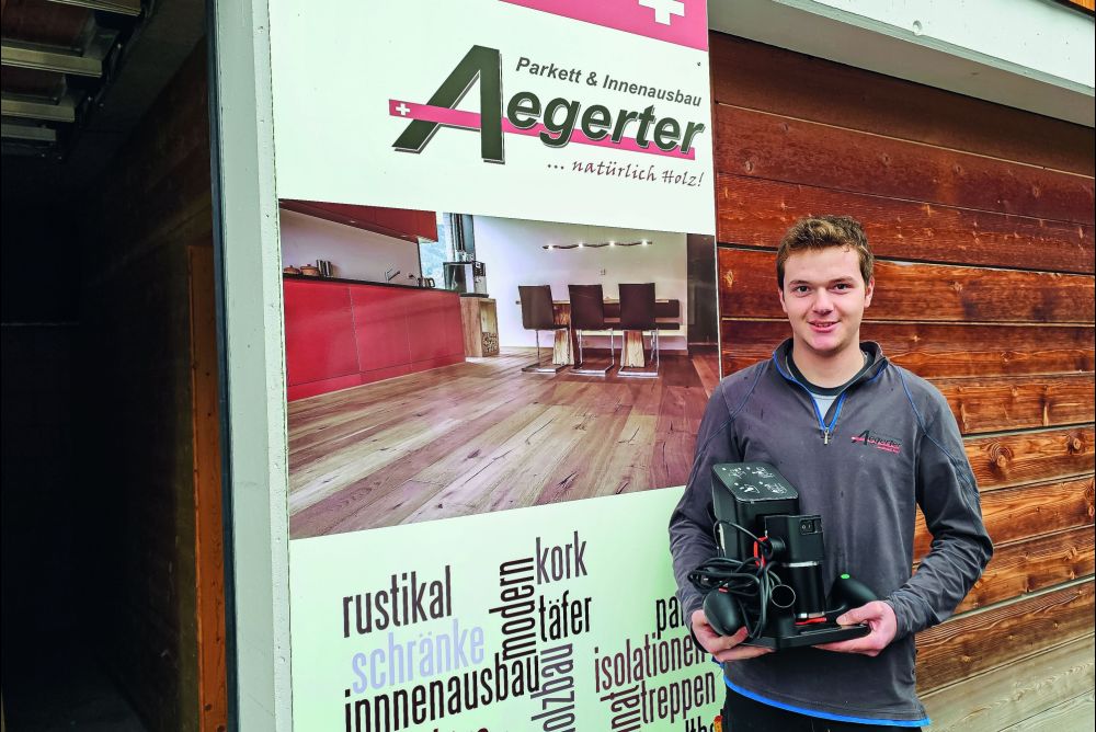 Perren hat vergangenes Jahr seinen Lehrabschluss absolviert und ist als Schreiner und Monteur Teil eines fünfköpfigen Teams. Bisher hatte er noch nicht die Gelegenheit, mit einer Shaper zu arbeiten. «Ich habe schon Videos zum Umgang mit der Shaper gesehen, halte sie aber gerade zum ersten Mal in der Hand», sagte der strahlende Gewinner. Er freue sich sehr darauf seine neue handgeführte CNC-Fräse zu entdecken und kennenzulernen. Bei seinem Glück wird Perren sicher auch an der Holz 2028 am Wettbewerb der SZ teilnehmen – und bis dahin hat er bestimmt auch seine Shaper im Griff.
