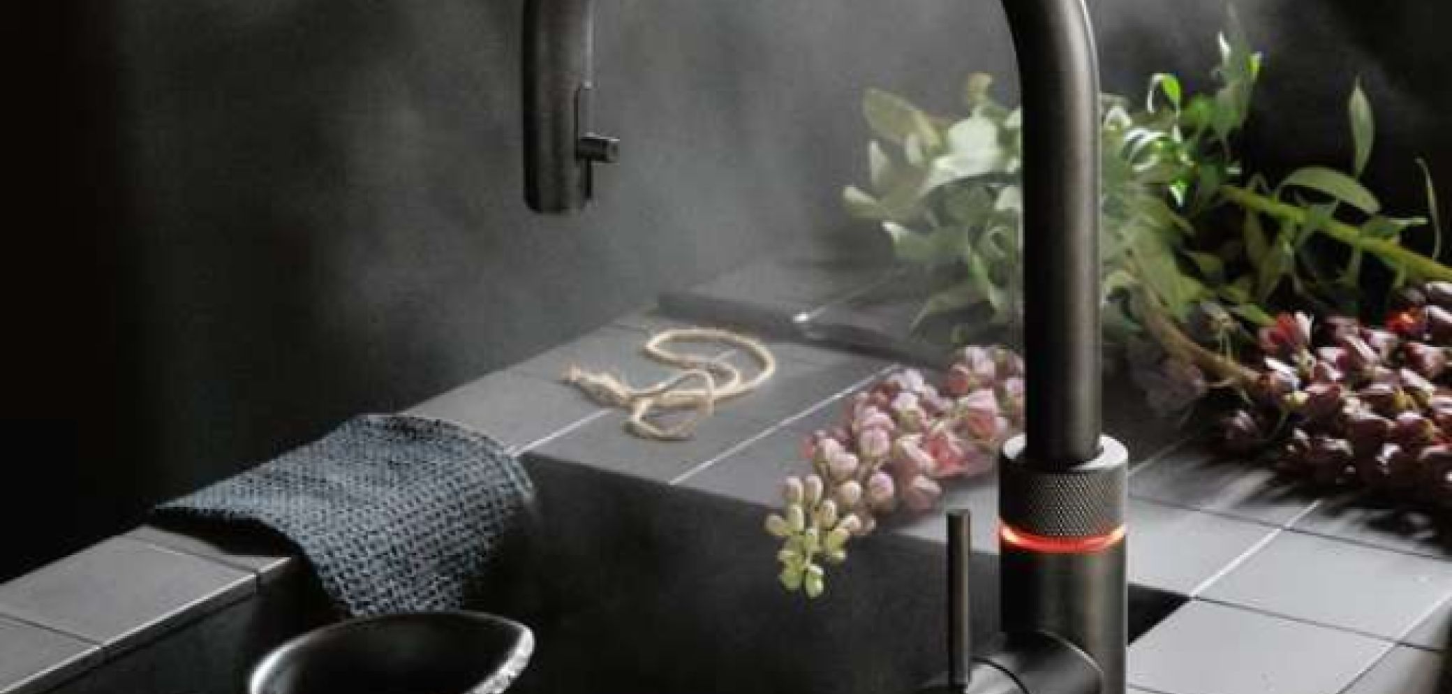 Unter der Spüle befinden sich zwei Geräte: Ein Reservoir, das für kochendes Wasser zuständig ist, und der «Cube», der mit dem angehängten CO2-Zylinder für gefiltertes, gekühltes und sprudelndes Wasser sorgt. Die abgebildete Armatur «Flex black» kostet 3750 Franken, inklusive des kleinsten Reservoirs «Pro3» und des Kühlers «Cube».
