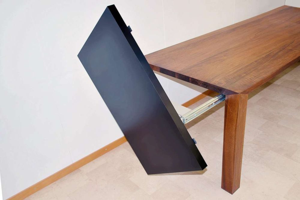 Tischverlängerungen. Wirklich grosse Tische brauchen einfach zu viel Platz und werden dann doch zu wenig gebraucht. Dieses uralte Problem beschäftigt findige Handwerker immer wieder von Neuem. Solche Situationen lassen sich durchaus passend lösen.