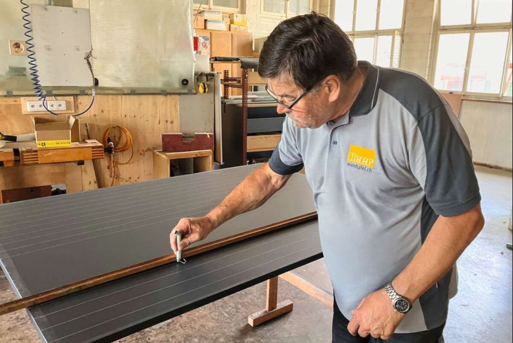 Heer legt die abgegriffene Richtlatte seines Grossvaters nach bewährter Manier auf die Metalltafel. Konzentriert setzt er den Linierapparat an, und mittels Feingefühl im Druck überträgt das Rädchen die Farbe auf die Tafel, während Heer, ohne abzusetzen, von einem Ende der Wandtafel zum andern pfeilgerade Linien zieht. Doch bald wird für ihn Schluss sein mit dieser schon fast meditativen Arbeit. Denn diesen Herbst stellt die Heer Söhne AG in Märstetten ihren Betrieb ein, und die Produktion von Wandtafeln ist Geschichte. Adrian Heer hat das Linieren der Wandtafeln beim einstigen Mitarbeiter Hans Gubler gelernt. Auf einem Flügel mit Quadratur zieht er 69 Meter Linien. Die magnetische Tafelfläche bezeichnet Heer als eigentliche Revolution auf diesem Gebiet. «Seit ich 1990 in fünfter Generation von meinem Vater Emil Heer den Betrieb übernommenen habe, liefern wir Wandtafeln in die Schulen aller Regionen der Schweiz, obwohl meine Vorfahren diesen Produktionszweig als zweites Standbein und eher als Hobby aufgebaut hatten», fügt er an. Holz sei für ihn als gelernter Schreiner schon immer der schönste Werkstoff und Schreiner der schönste Beruf gewesen, erzählt er mit einem Strahlen im Gesicht. Als Schreinerei von seinem Urahnen im Jahr 1865 gegründet, nahm der Familienbetrieb ums Jahr 1930 die Herstellung von Wandtafeln auf. Seither sind Heer-Wandtafeln im Thurgau und weit darüber hinaus zu einem Begriff geworden.