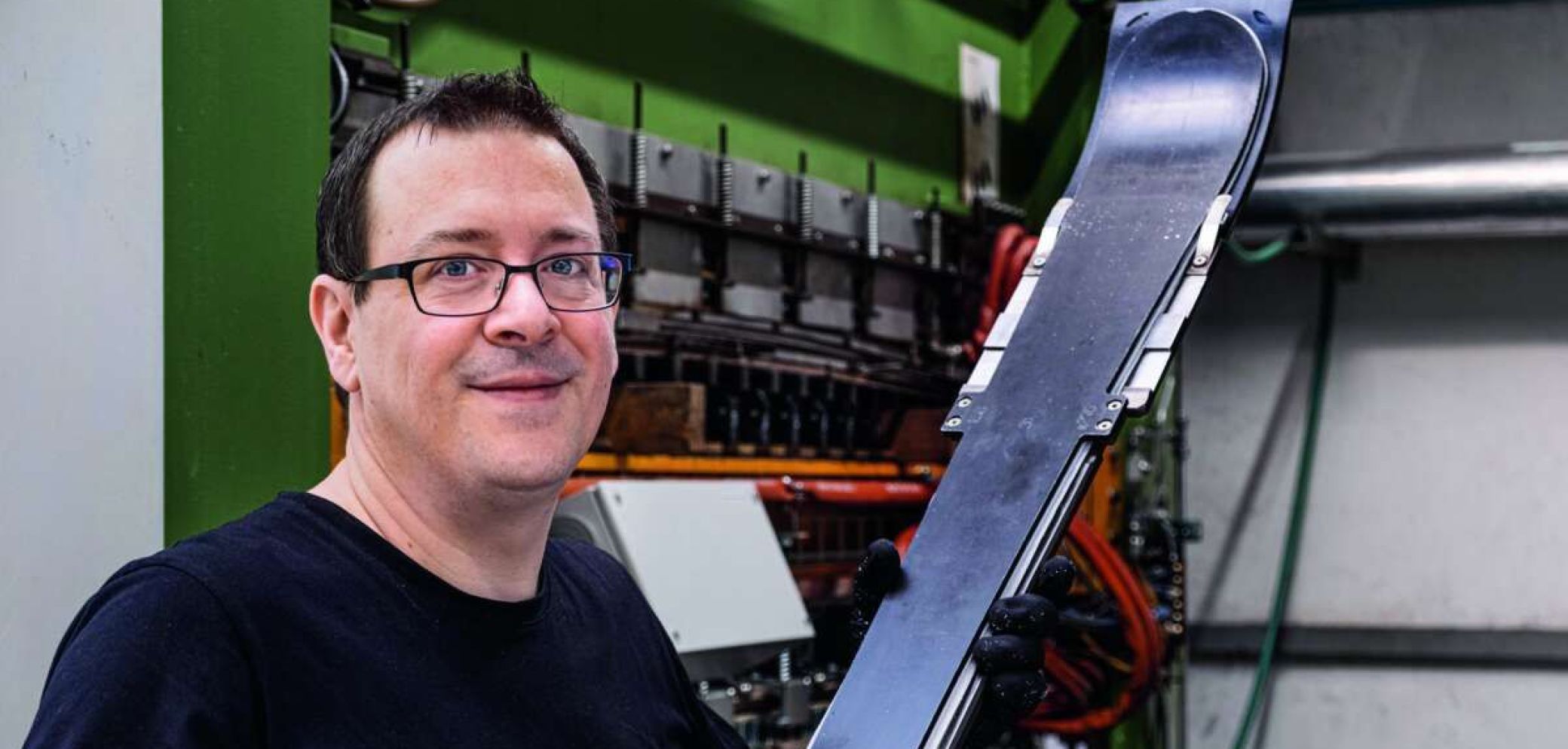 Sascha Prévot (44) ist seit fast neun Jahren als Skibauer bei der Skimanufaktur Stöckli tätig. Am liebsten baut er Rennski. Bild: Caroline Mohnke