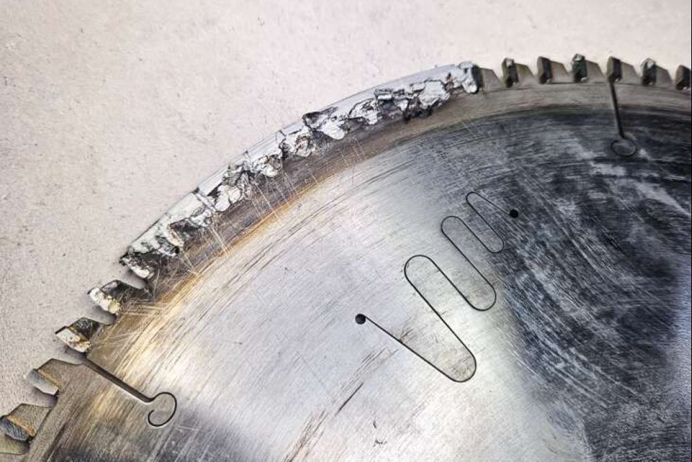 «Hier waren die Messer irgendwann so abgestumpft, dass sie nicht mehr geschnitten, sondern nur noch geschabt haben», erklärt Stefan Zvar. Statt sauberer Späne ist dadurch nur noch Staub entstanden, der sich schliesslich am Werkzeugkörper angeheftet hat. Der Hobelkopf wurde auf diese Weise bis zum Schneidenbruch beansprucht. «In einem solchen Fall kann man von Glück sprechen, wenn nur die Messer Schaden nehmen und nicht auch noch der Hobelkopf oder die Maschine beschädigt werden», sagt Zvar.