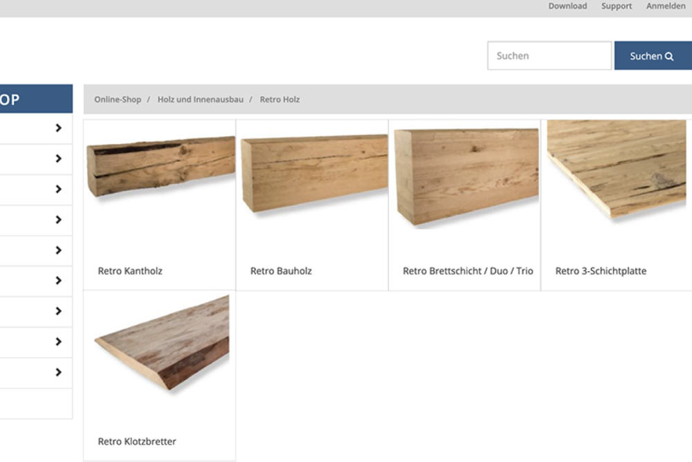 Allerdings muss man wissen, was man bestellt, denn leider fehlen im Shop oft Bilder zu den Produkten, was beim Benutzenden etwas ein Gefühl von Blindflug erzeugt. Ist die Produktbezeichnung bekannt, geht das Prozedere schnell. Einfach aufzufinden über das Stöbern nach Produktgruppen wie Hobelwaren, Dämmstoffe oder Innenausbausysteme, erscheinen die wichtigsten Infos zu einem Produkt, sein Preis und die Verfügbarkeit ab Lager.