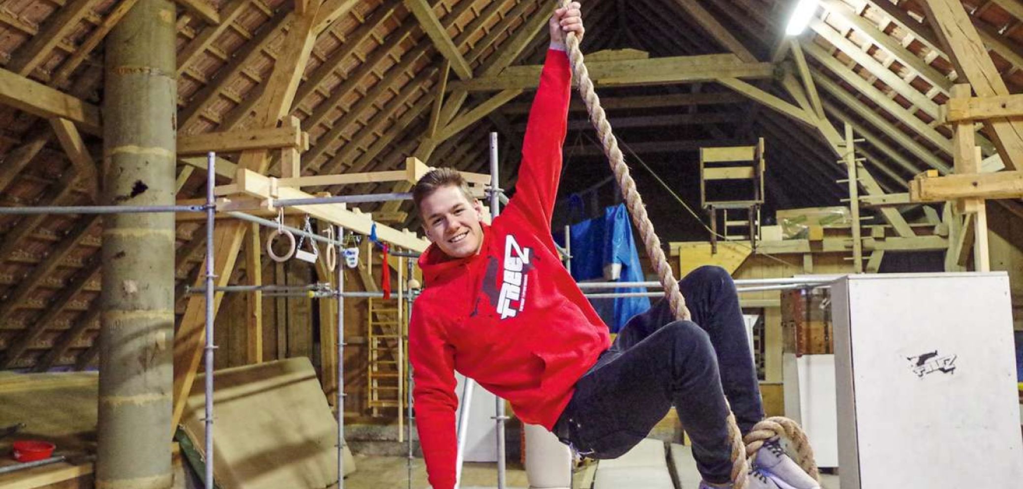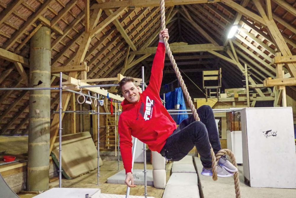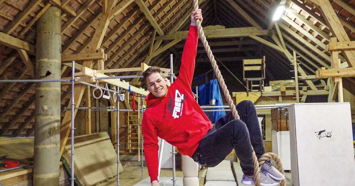 Sandro Scheibler (20) schwingt sich dank selbst geschreinertem Trainingsparadies von Erfolg zu Erfolg. Bild: Beatrix Bächtold