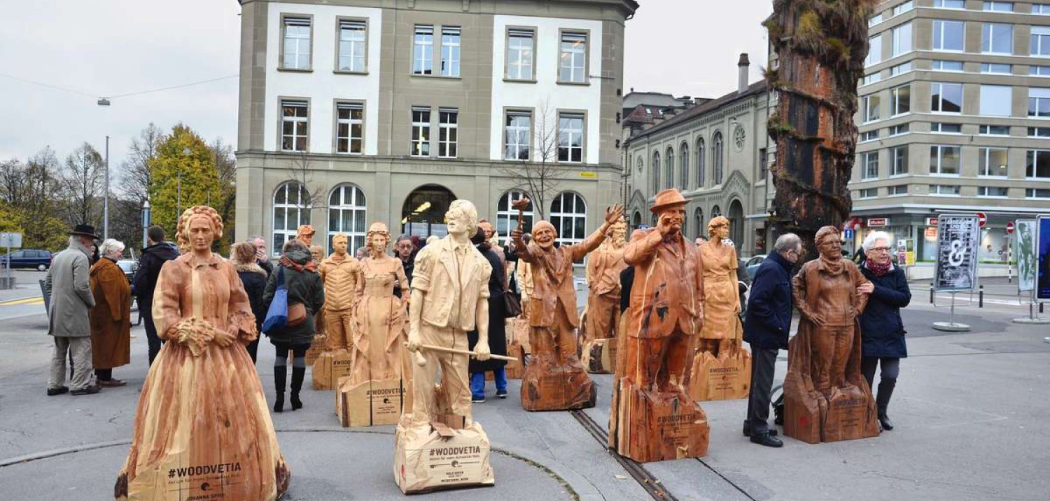 Für Sylvia Flückiger-Bäni, Nationalrätin und Präsidentin Lignum, repräsentieren die 20 Figuren, hergestellt aus 20 verschiedenen Hölzern, die Vielfalt der Schweizer Wälder. «Holz steht für Kraft und Leben», sagte Daniel Fässler, Nationalrat und Präsident von Wald Schweiz. Wälder, die nicht regelmässig verjüngt werden, nehmen weniger CO2 auf. Ausserdem leide bei überalterten Wäldern die Biodiversität, was ökonomische Konsequenzen wie den Rückgang von Arbeitsplätzen nach sich ziehe. «Wir müssen uns für das einheimische Holz stark machen», befand auch Holzunternehmer Gauthier Corbat. Die Woodvetia-Kampagne sieht der Jurassier als gutes Werkzeug zur Sensibilisierung der Leute.