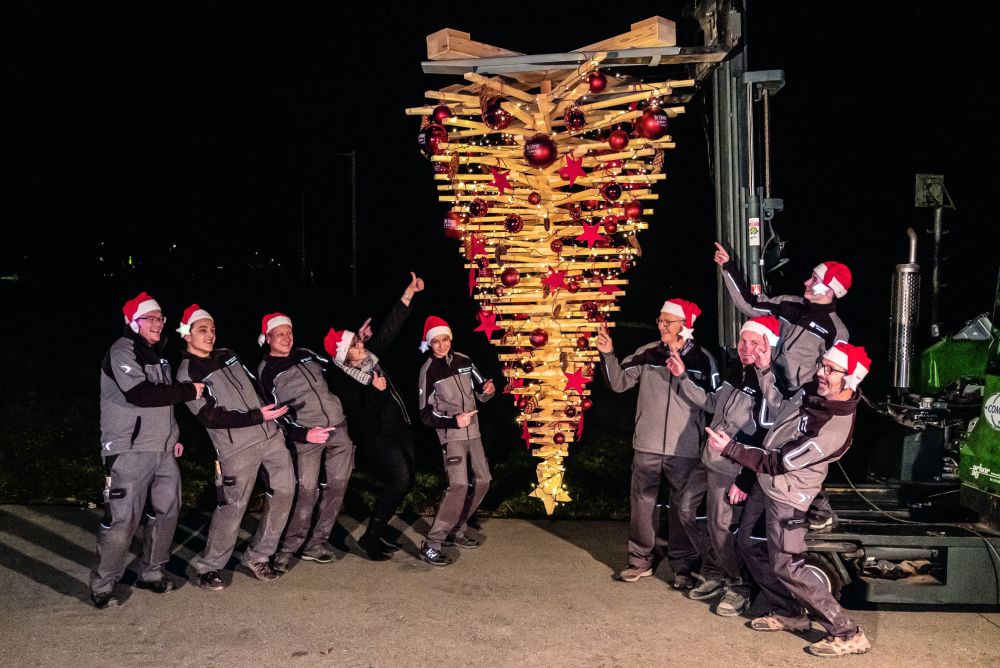 Entschieden hat sie sich am Ende mit 13 Stimmen für den kopfüber hängenden Baum der Schläppi Innenausbau GmbH in Lenk BE. Die Schreinerei gewinnt einen Grill-Zmittag. Knapp dahinter, mit 12 Stimmen, rangiert die Jäggi AG Türen und Schreinerei in Arlesheim BL mit dem Spiralbaum. Sie hat sich einen Handwerker-Znüni verdient. Auf dem dritten Platz schliesst das Massnahmenzentrum Uitikon ZH (MZU) mit 9 Stimmen mit einem liebevoll gestalteten Weihnachtsbaum-Ensemble ab. Dafür erhält es einen Zvieri.