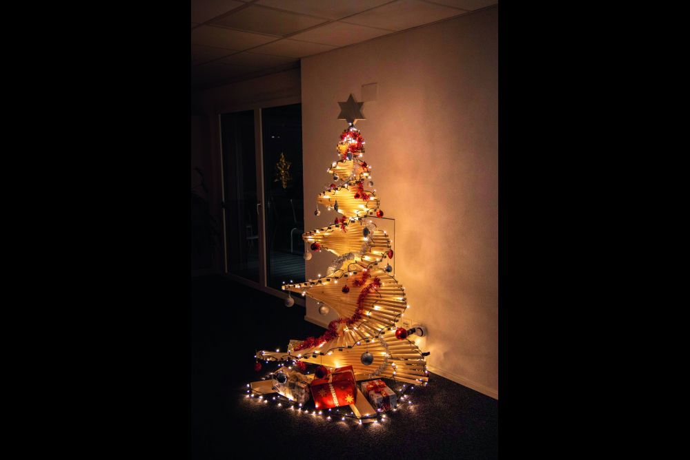 Erster Rang für den kopfüber hängenden Baum der Schläppi Innenausbau GmbH in Lenk BE. Bild: Schläppi Innenausbau GmbH