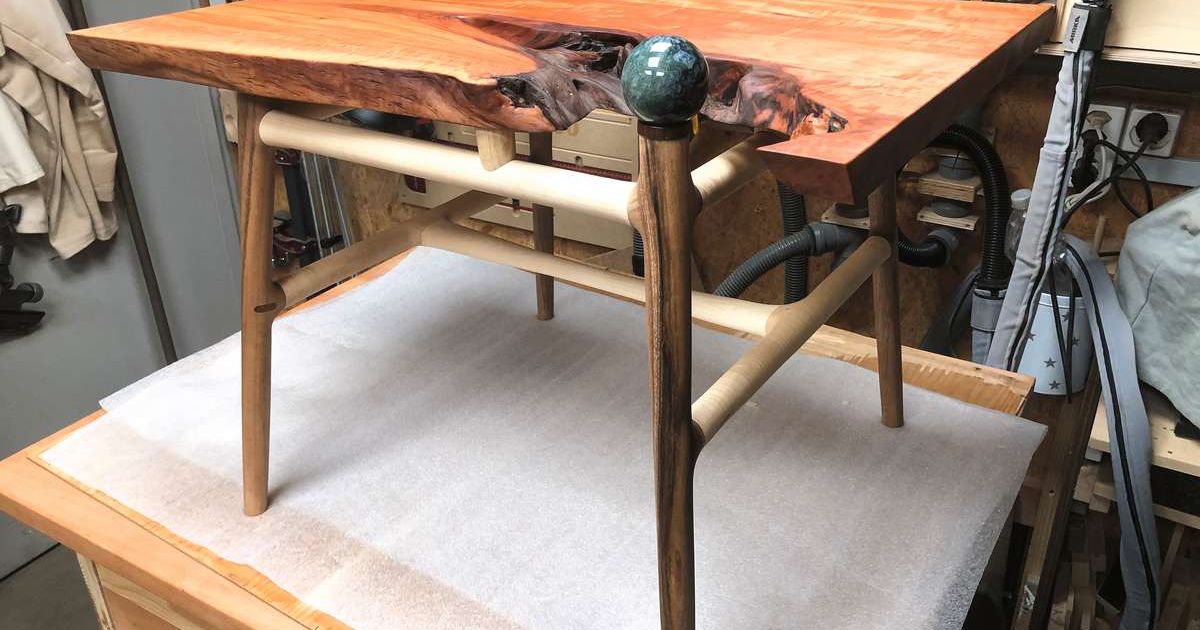 Ein besonderes Projekt hat sie wegen ihrer Hand, die endlich wieder belastbar ist, erst kürzlich beenden können: Einen Drechslertisch, der in der Form an einen japanischen Tempel erinnert. «Zuerst war er als Stuhl gedacht. Doch in der Pause habe ich die Idee zu einem Tisch weiterentwickelt.»