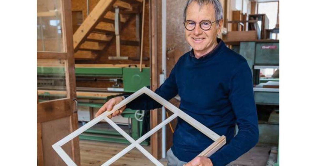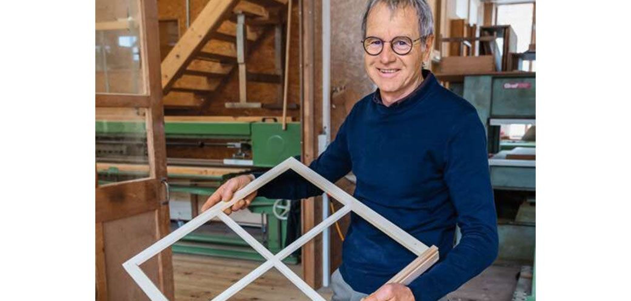 Betriebsleiter Beat Barmettler (63) hält die Aufdoppelung eines Klosterfensters in der Hand, das renoviert wird. Bild: Caroline Mohnke