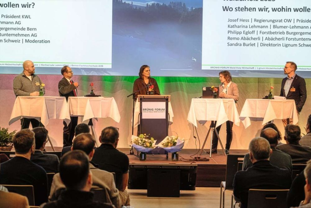 Ein Höhepunkt des Forums war der politische Austausch mit Bundesrat Albert Rösti und dem Obwaldner Baudepartementsvorsteher Josef Hess. Rösti führte aus, welche Bedeutung die Wald- und Holzstrategie 2050 für die Anpassung an den Klimawandel, für Versorgungssicherheit und nachhaltige Ressourcennutzung hat. Hess betonte den langen Prozess der Erarbeitung und die Wichtigkeit der Massnahmen, die eine Strategie erst im Alltag integrieren.
