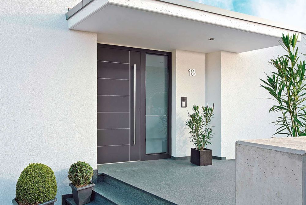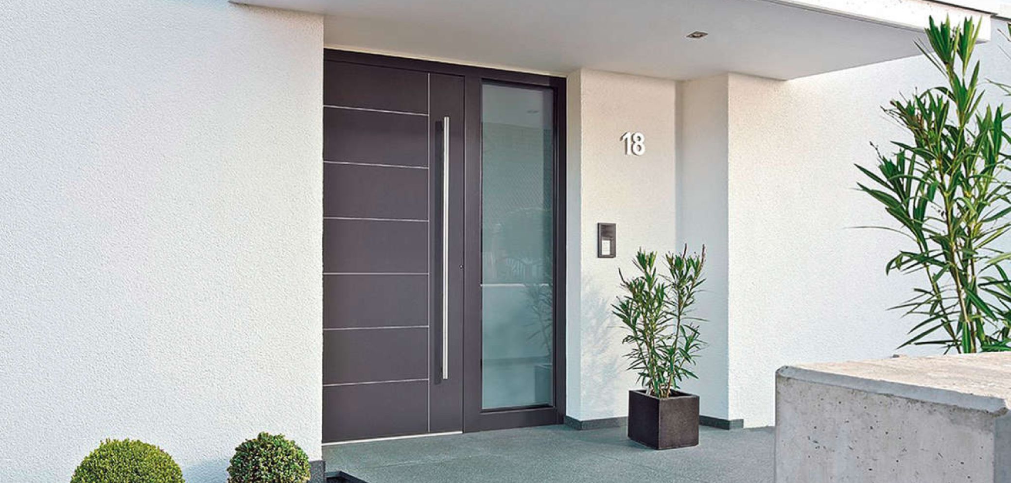 Die Aluminiumhaustür «AluLine AL1» von Ego Kiefer besticht durch ihr Design und ihre funktionale Vielseitigkeit. Einzeltüren lassen sich zusätzlich in Kombination von Seitenteilen und Oberlichtern realisieren. Das Rollenband für die Kunststoff- und Kunststoff/Aluminium-Haustüren ist schön fürs Auge und schont die Dichtung. Glatte Flügelprofile mit der Möglichkeit filigran wirkender Verglasungen ergeben eine schlanke Ästhetik. Das geprüfte und sichere System mit guter Wärmedämmung und Statik ist auch für den Bau von Haustüren mit Fluchtfunktion geeignet.