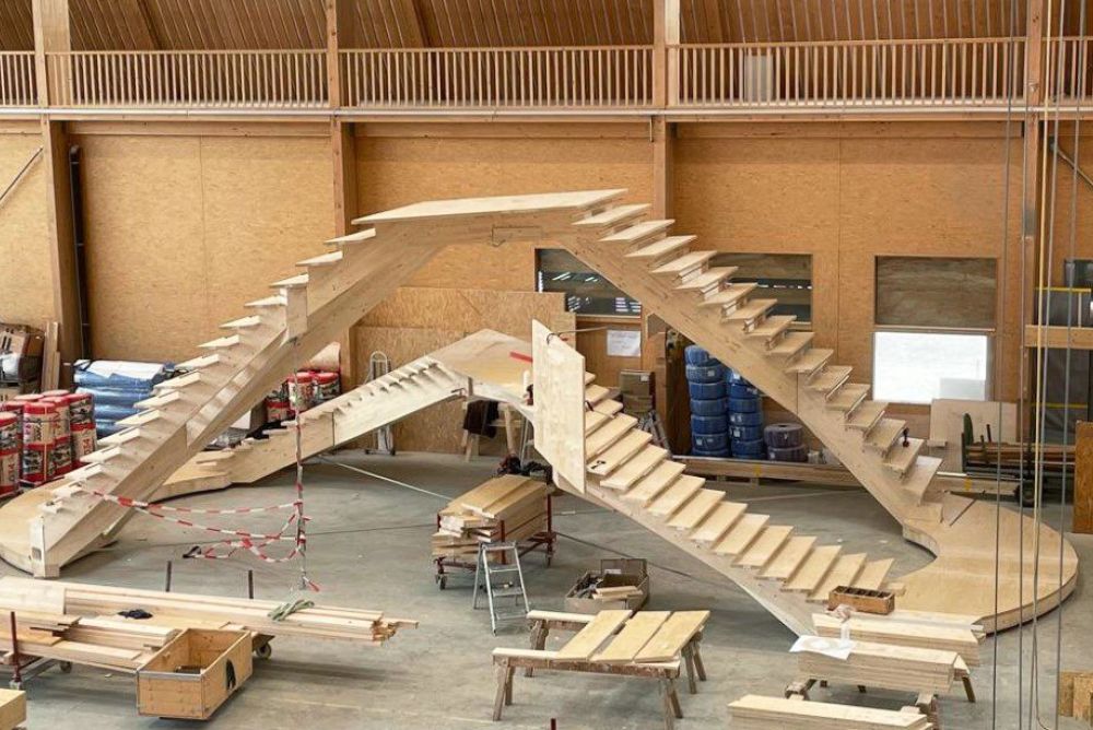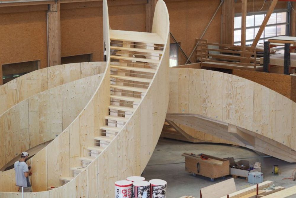 Da gibt es zum Beispiel die begehbare Holzskulptur «Infinity» zu erleben, welche die Flexibilität und Fortschrittlichkeit des Baustoffes Holz ins Zentrum stellt. Sie ist in Zusammenarbeit der Hector Egger Holzbau AG und den Szenografen Ortreport aus Zürich entstanden und soll als eine gebaute Aufforderung für ein Denken und Handeln in Kreisläufen verstanden werden.